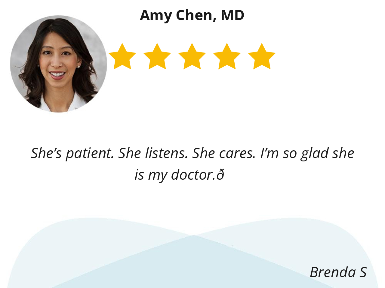 I like doctor Chen because she’s caring and knowledgeable.