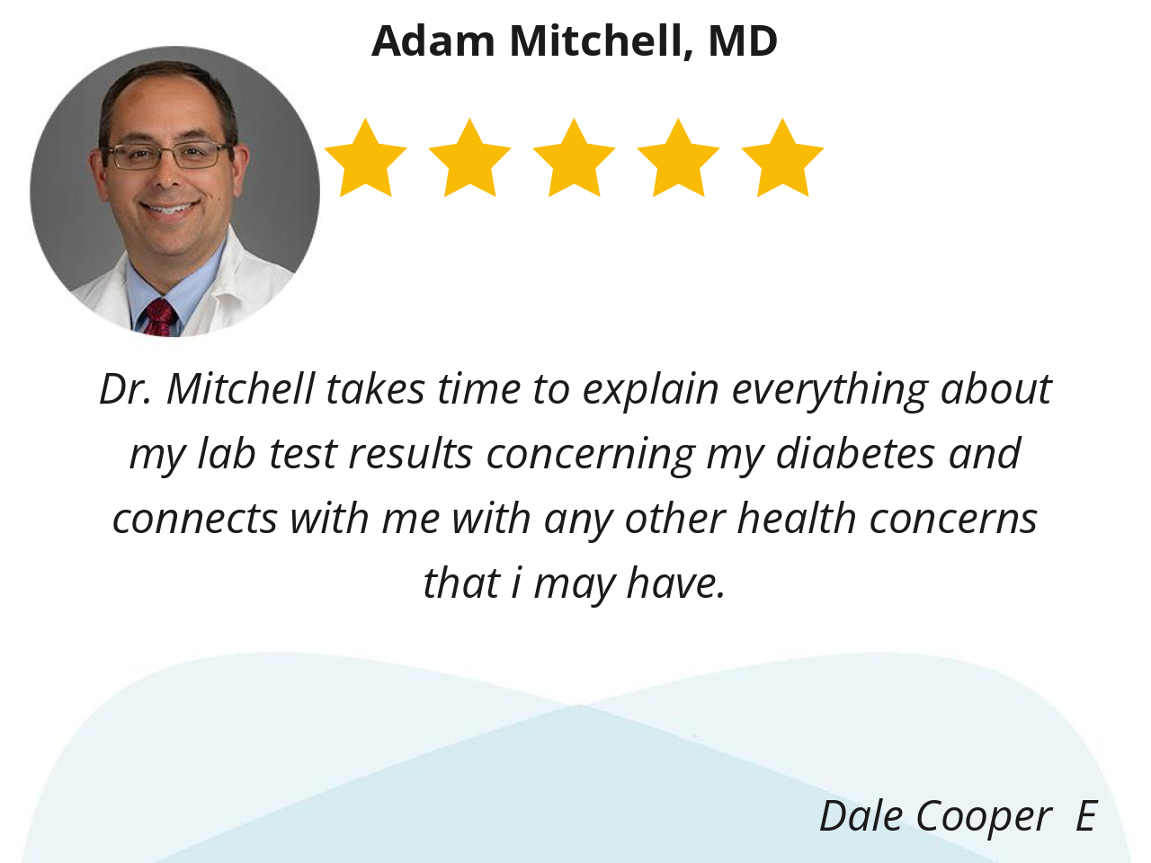 Dr. Mitchell takes time to explain everything about my lab test results concerning my diabetes and connects with me with any other health concerns that i may have.
