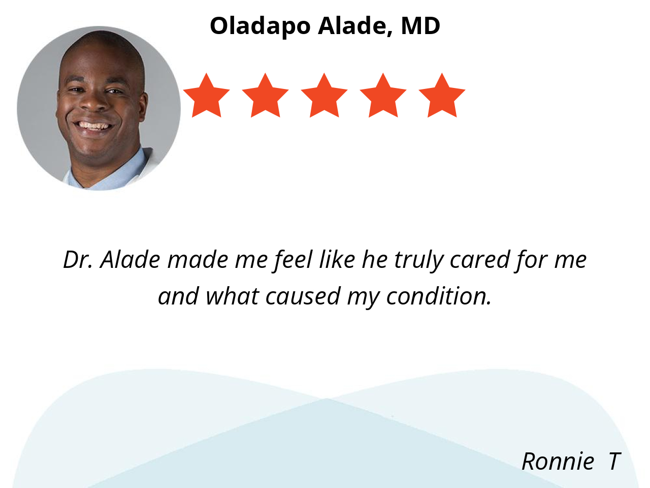 Dr. Alade made me feel like he truly cared for me and what caused my condition.