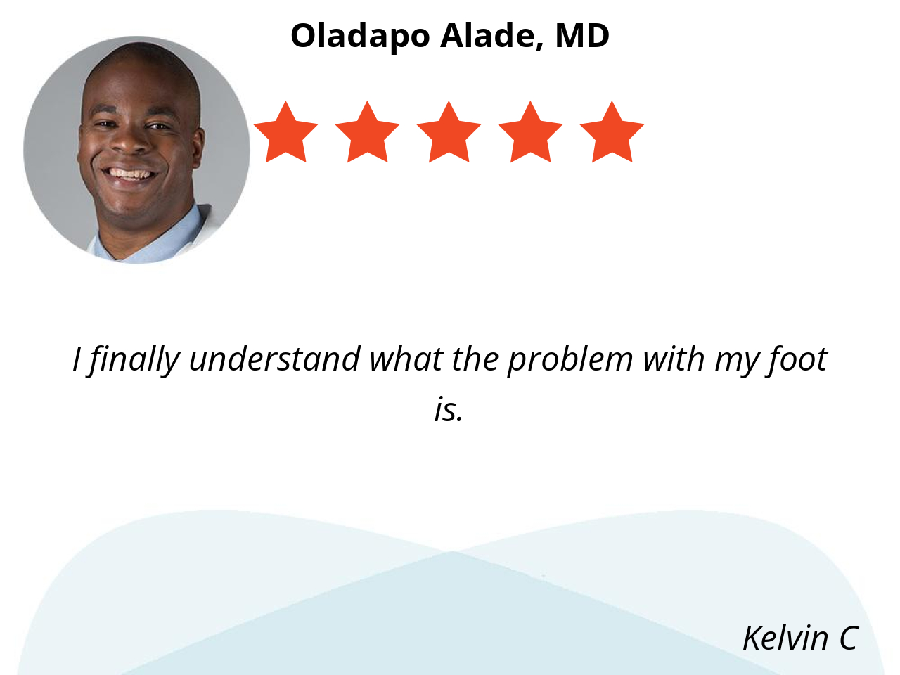 Dr. Alade is an exceptional Doctor. He recently performed a bunionectomy on my left foot to alleviate my pain, and I am already scheduled for my second procedure in September. Dr. Alade is truly a master of his craft—kind, professional, and dedicated to his patients. I wholeheartedly recommend him for any foot-related procedures anyone may need.
