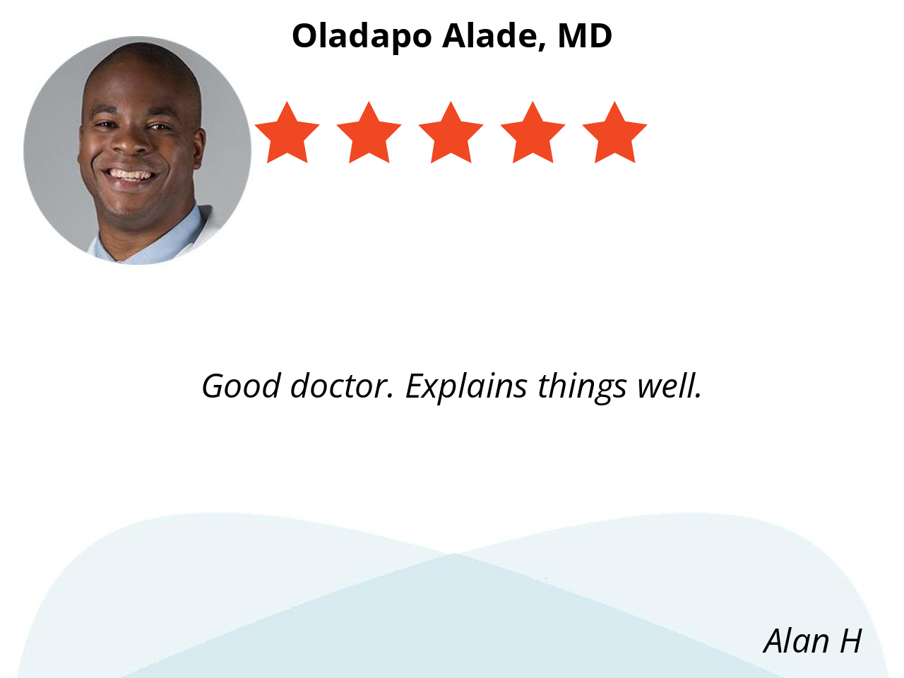 Dr. Alade was very pleasant, direct, and warm. He explained everything effectively.