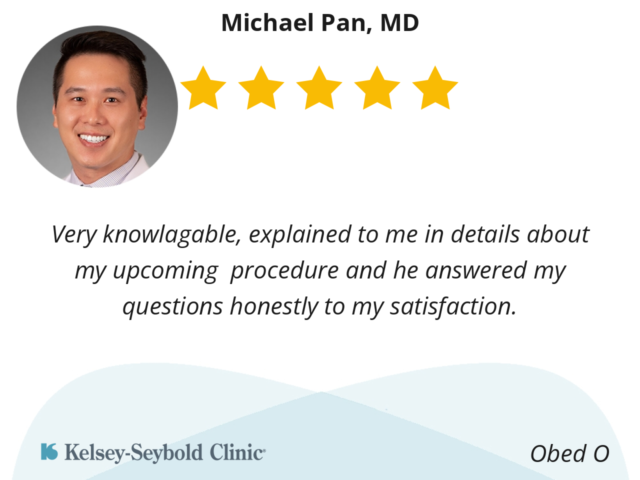 Dr. Pan listens to my concerns and addresses them quickly. He is a doctor who truly cares about his patients.