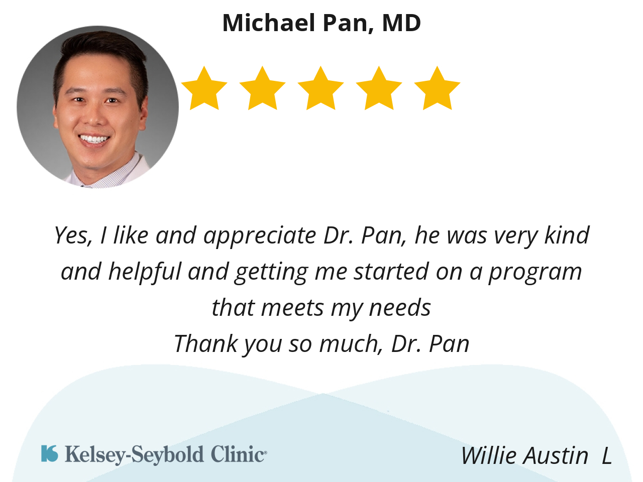 Yes, I like and appreciate Dr. Pan, he was very kind and helpful and getting me started on a program that meets my needs