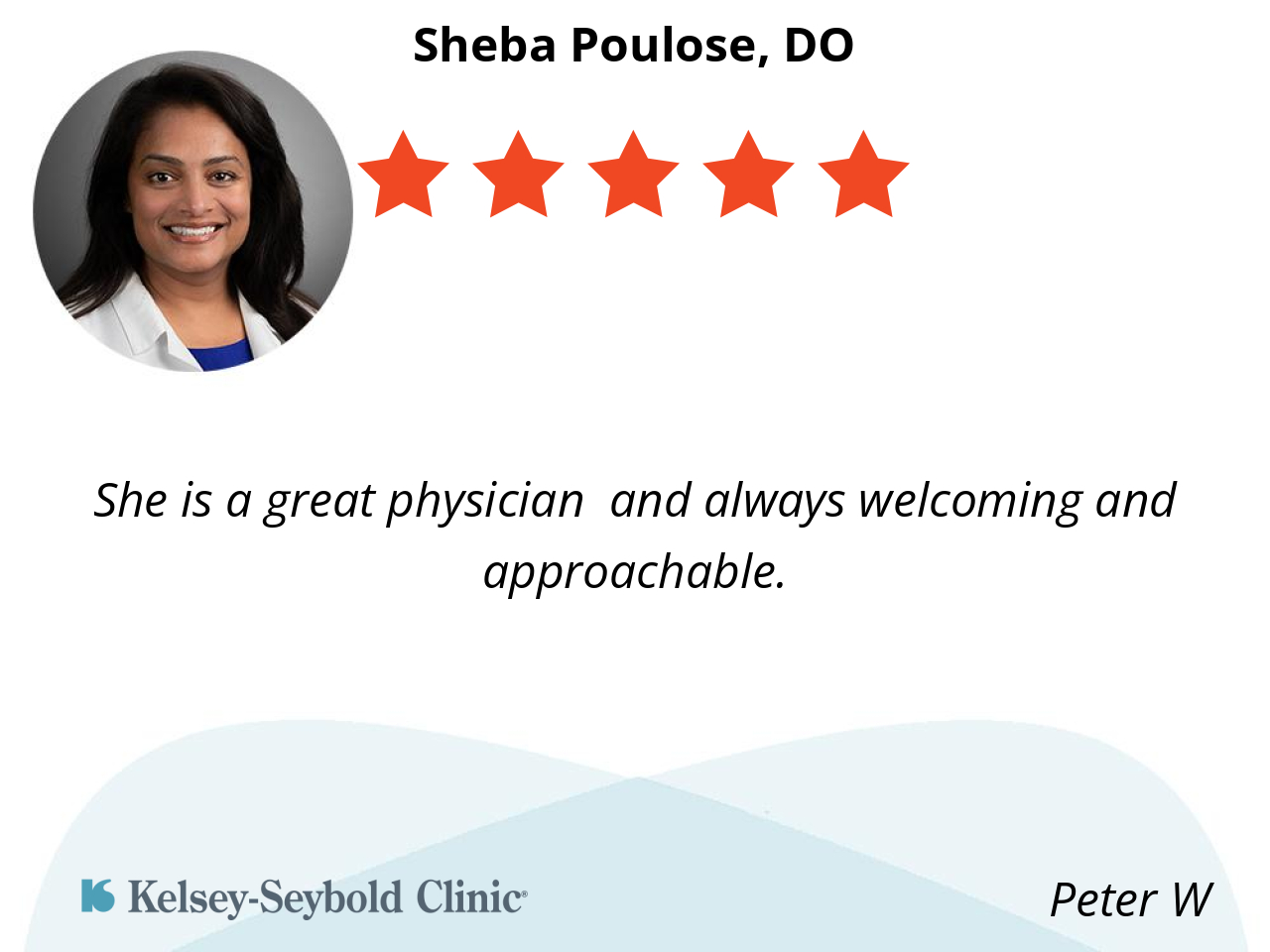 She is a great physician and always welcoming and approachable.