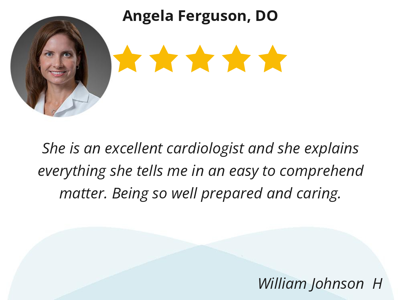 Dr. Ferguson is to me is a very smart doctor and concern to detail about all of my heart problems. she is a very good cardialogist. and I would recommend her to all my freinds and family.