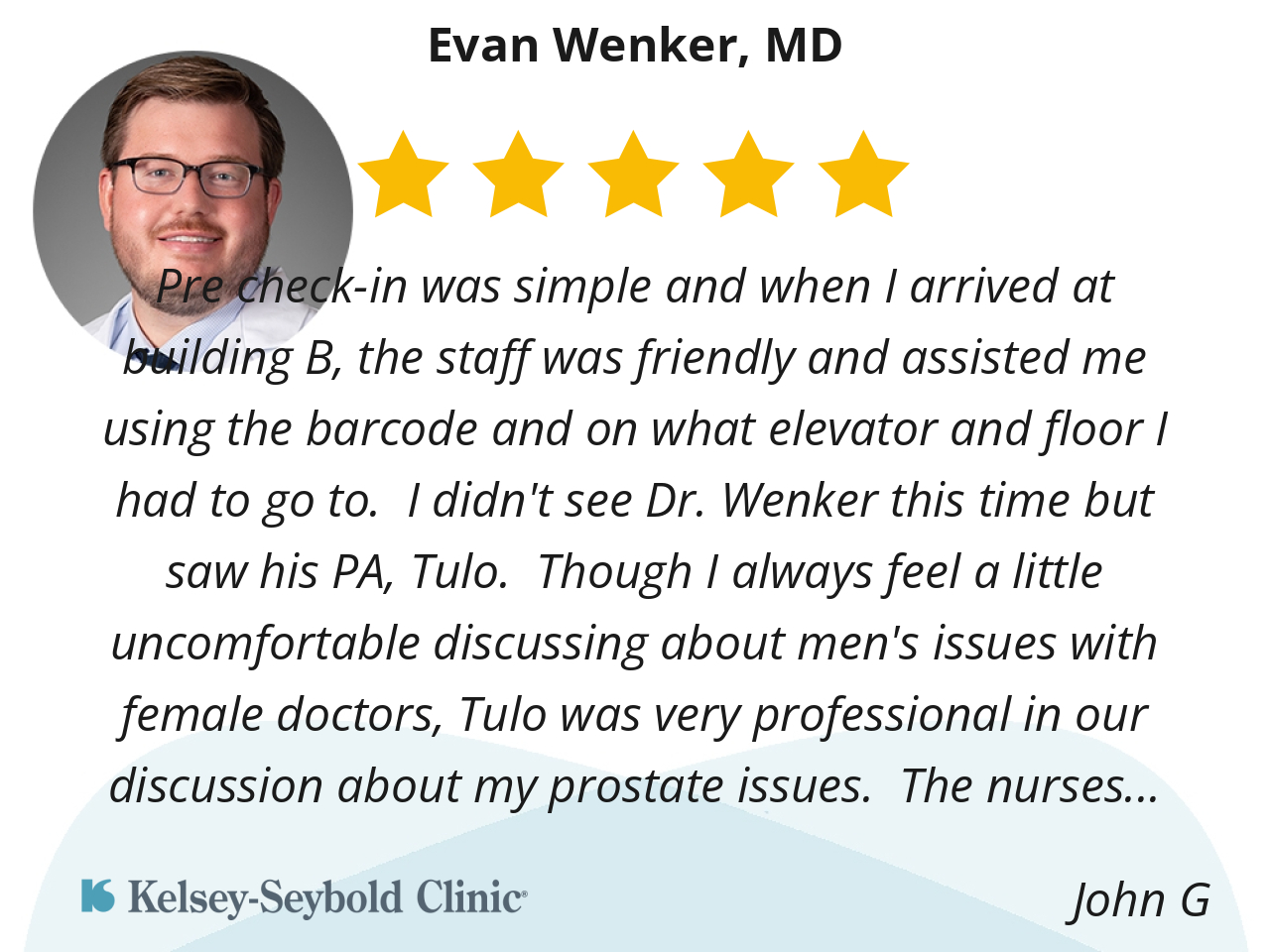 I was so impressed by Dr. Wenker's service that I referred him to my husband, who has prostate issues.