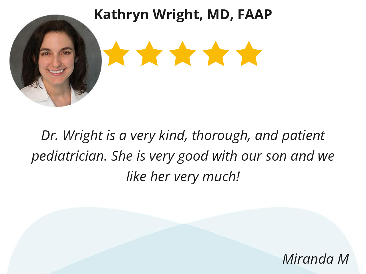Dr. Wright is a very kind, thorough, and patient pediatrician. She is very good with our son and we like her very much!