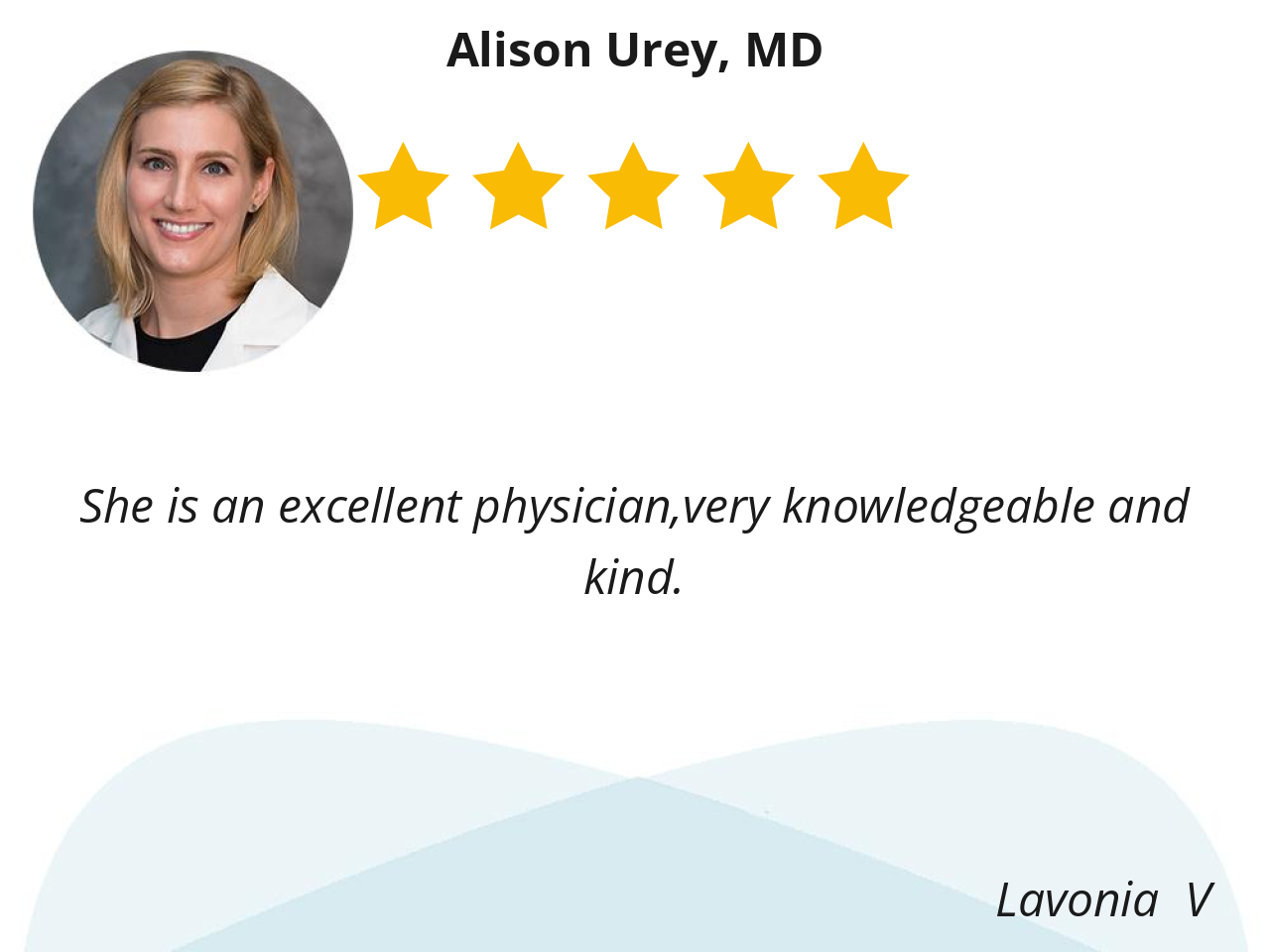 she is caring, understanding and very compassionate, Dr Urey is not only a GREAT Doctor but a wonderful person