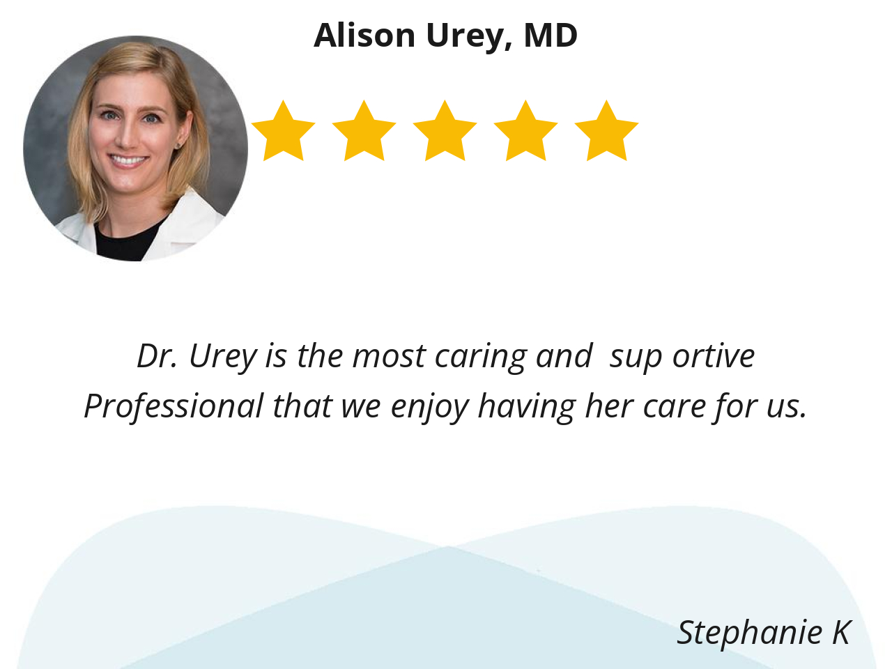 Dr. Urey is the most caring and sup ortive Professional that we enjoy having her care for us.