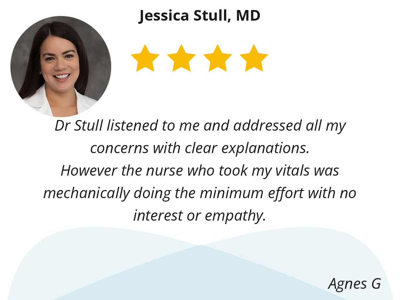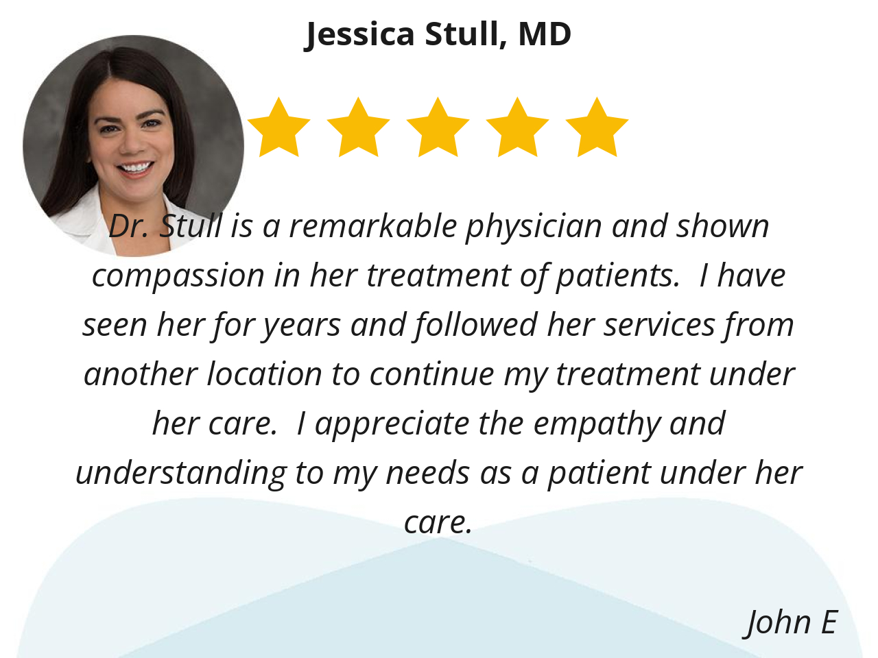 Dr. Stull is a remarkable physician and shown compassion in her treatment of patients. I have seen her for years and followed her services from another location to continue my treatment under her care. I appreciate the empathy and understanding to my needs as a patient under her care.