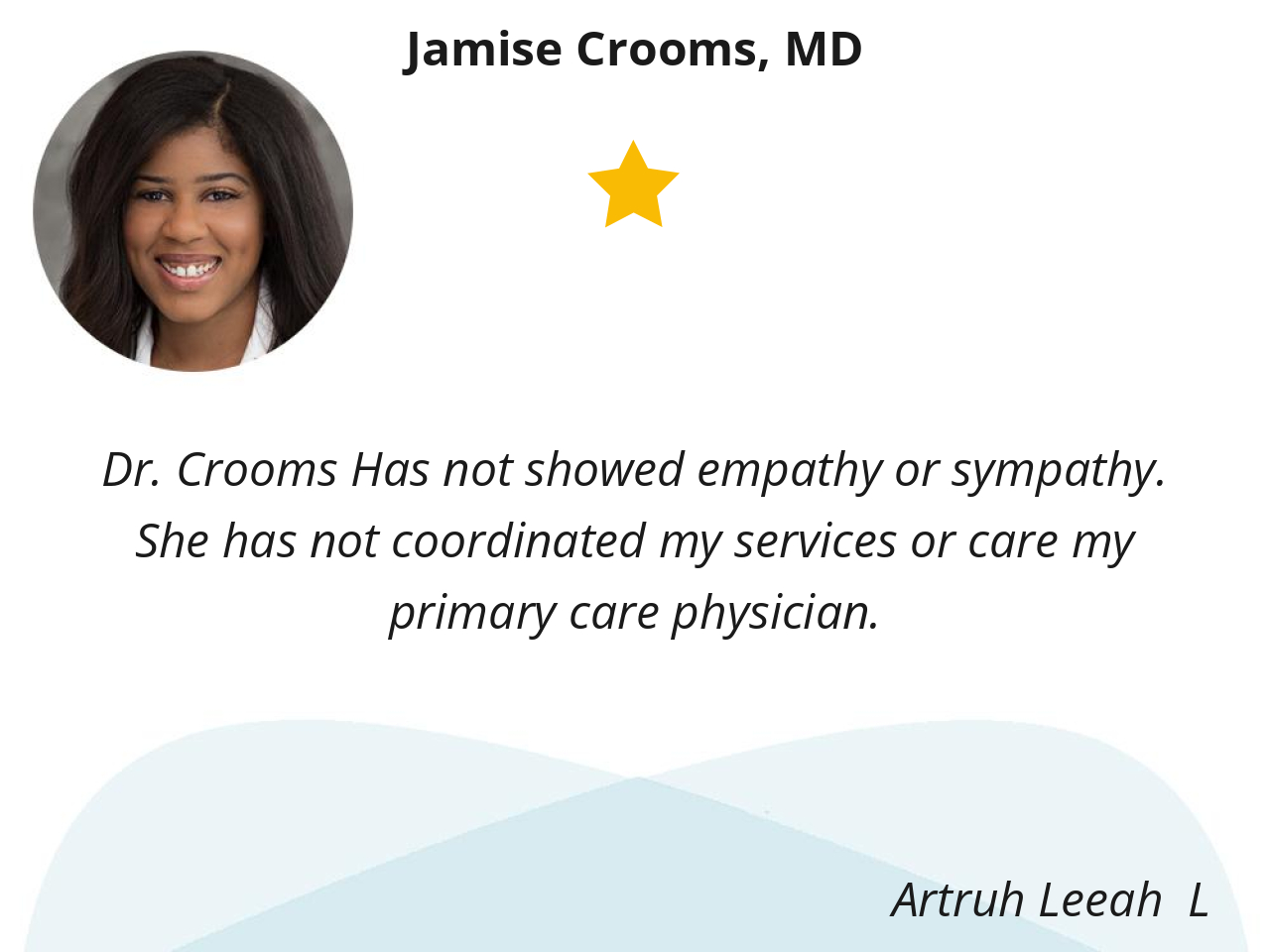 Very professional and has great bedside manners. You’re not just a number to her. Dr. Crooms doesn’t rush you out of her office; she makes sure she discusses everything about your examination. She cares a great deal about her patients. I rate Dr. Crooms a high 5 and I give her an A +.