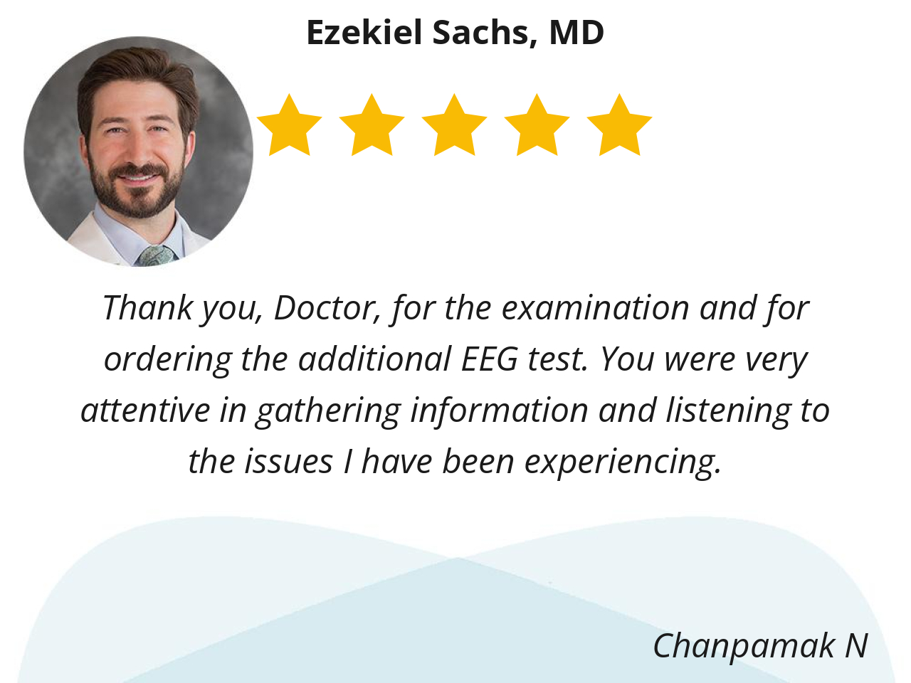Dr Sachs is the third neurologist I have had in 2 years. The others moved away and unavailable to me. Dr Sachs’s took me as a new patient. Recently my optometrist contacted Dr Sachs due to a suspected change in my myasthenia and he responded. I was able to see him ASAP and he ordered future test to determine the issue.