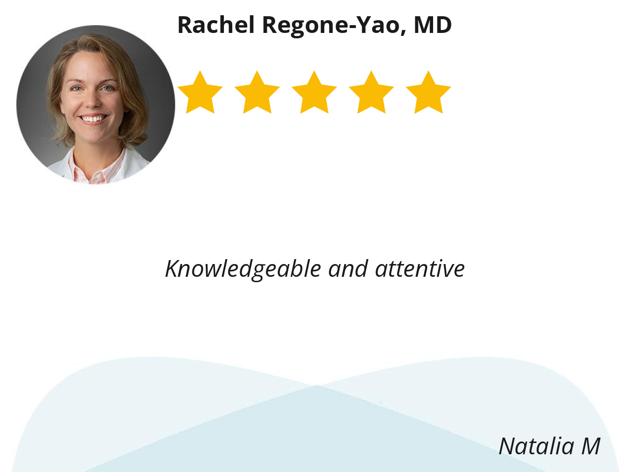 Dr. Rachel Regone earned her Bachelor of Science in Health Science from Clemson University, Clemson, S.C. in 2009. She received her Doctor of Medicine degree in 2013 from The University of Texas Medical School at Houston.