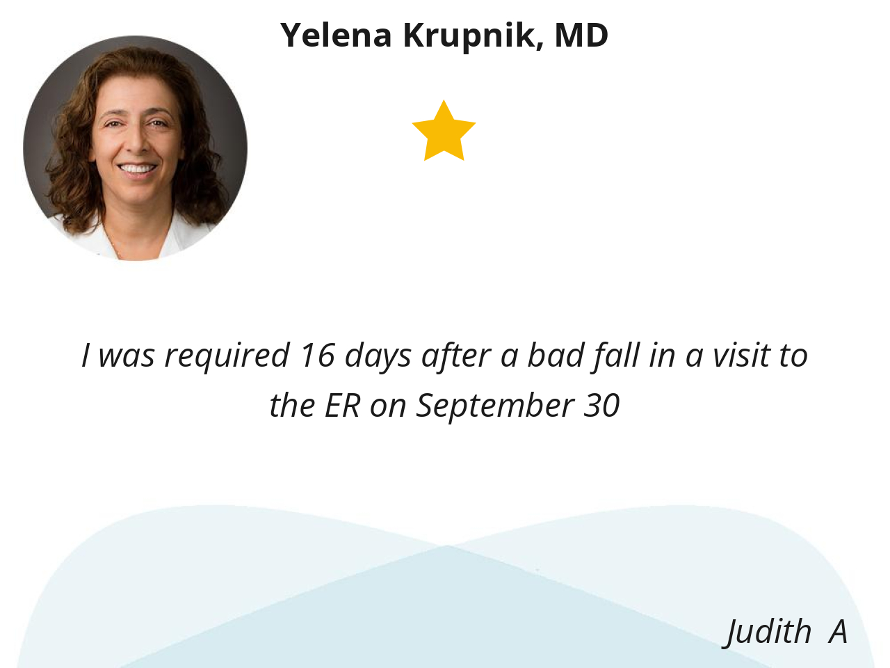 Dr. Krupnik always takes time to listen to me and address my concerns. She doesn’t appear to be rushed. I appreciate that. She’s very personable.