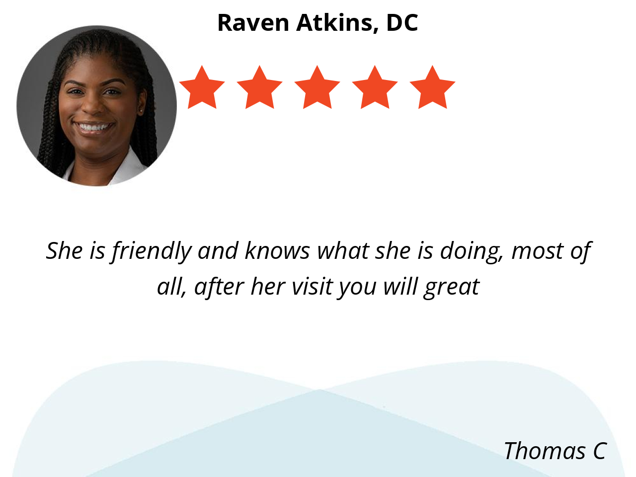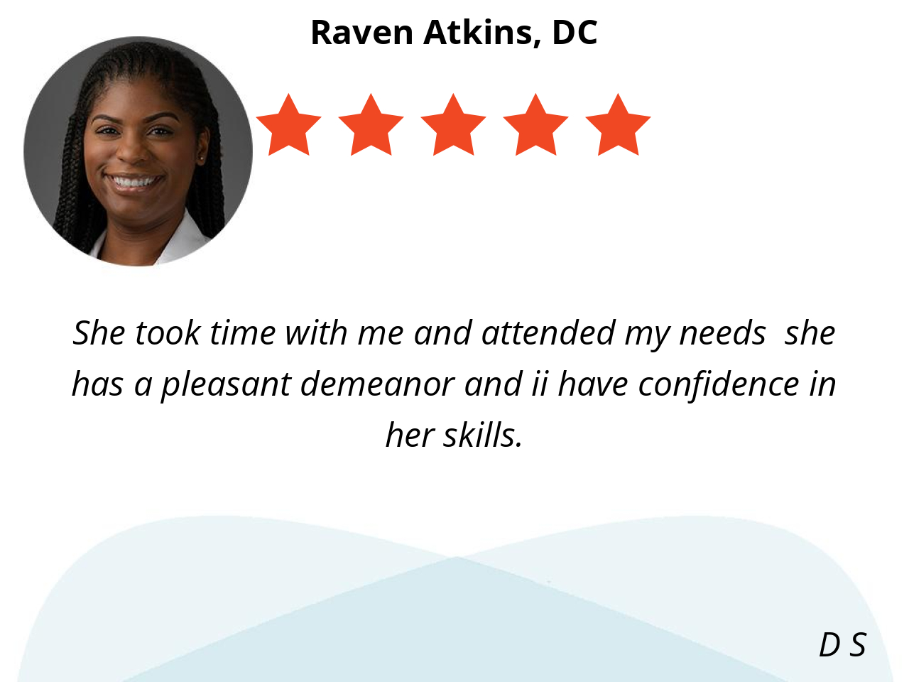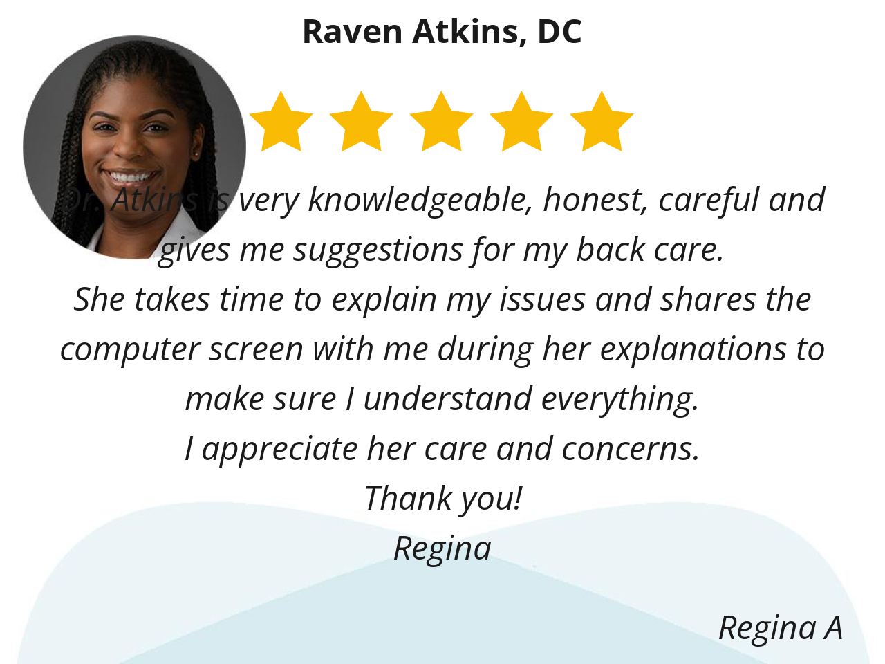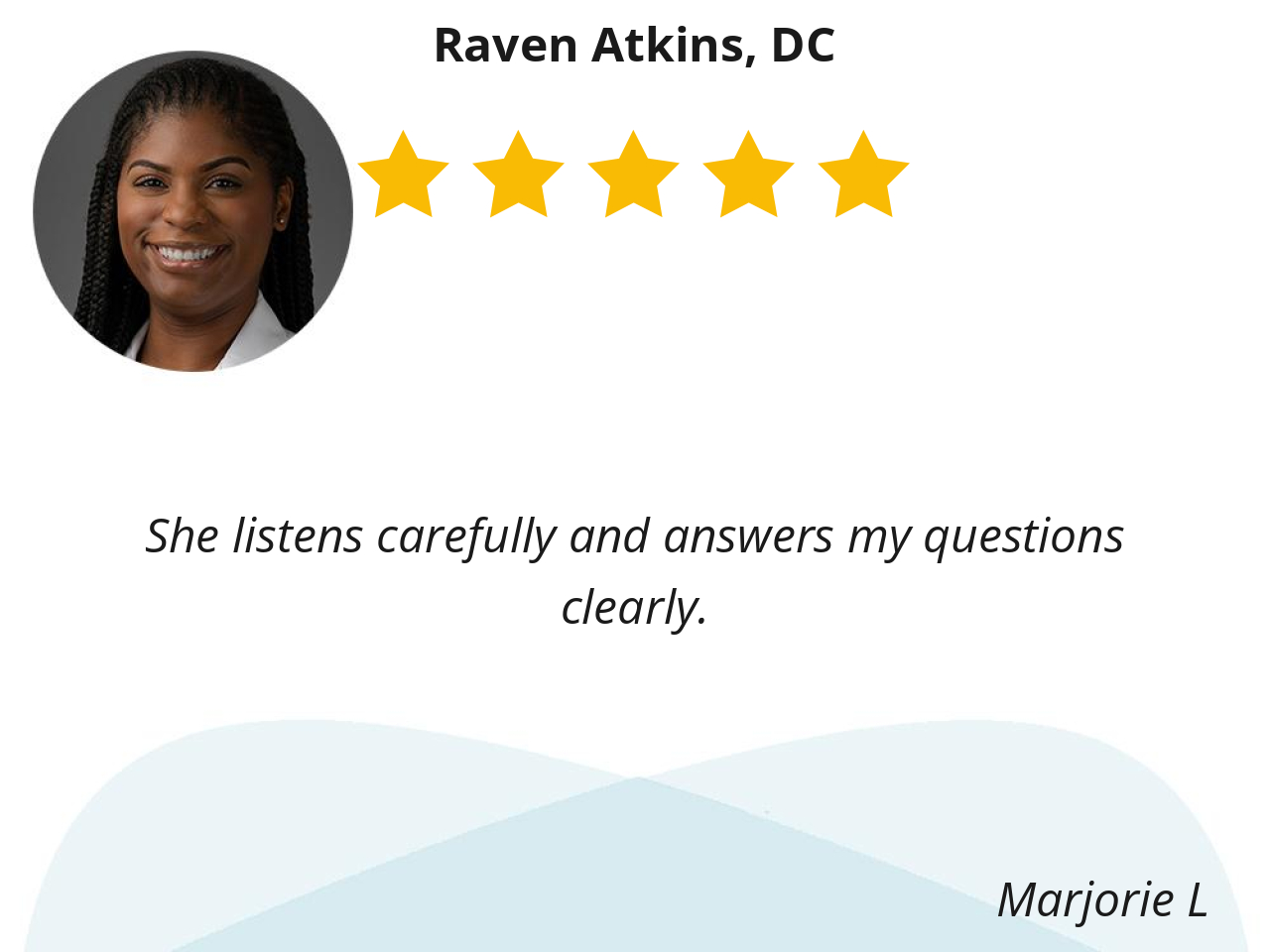 Dr. Atkins is very knowledgeable, honest, careful and gives me suggestions for my back care.