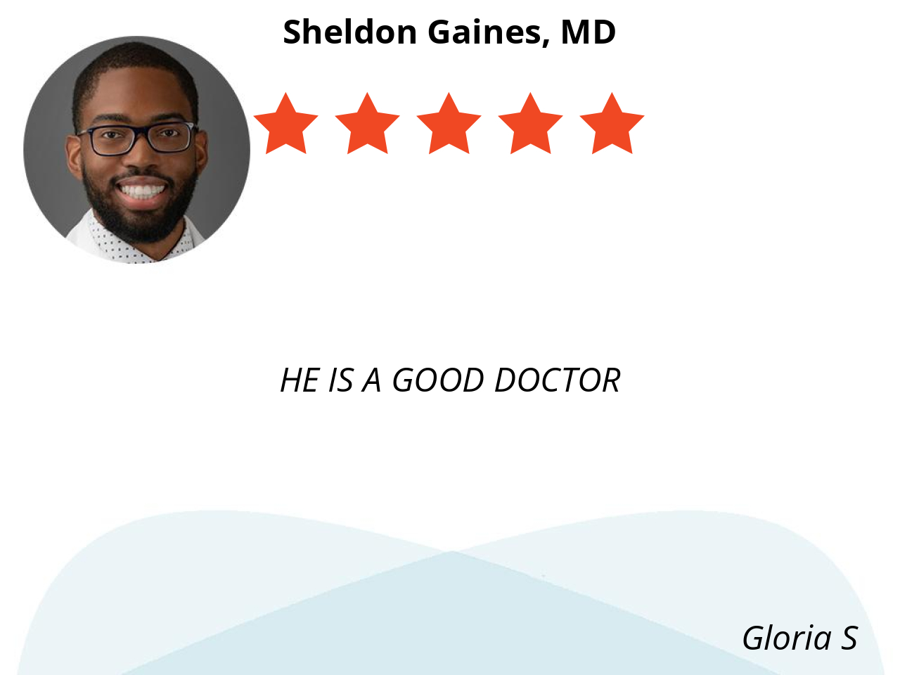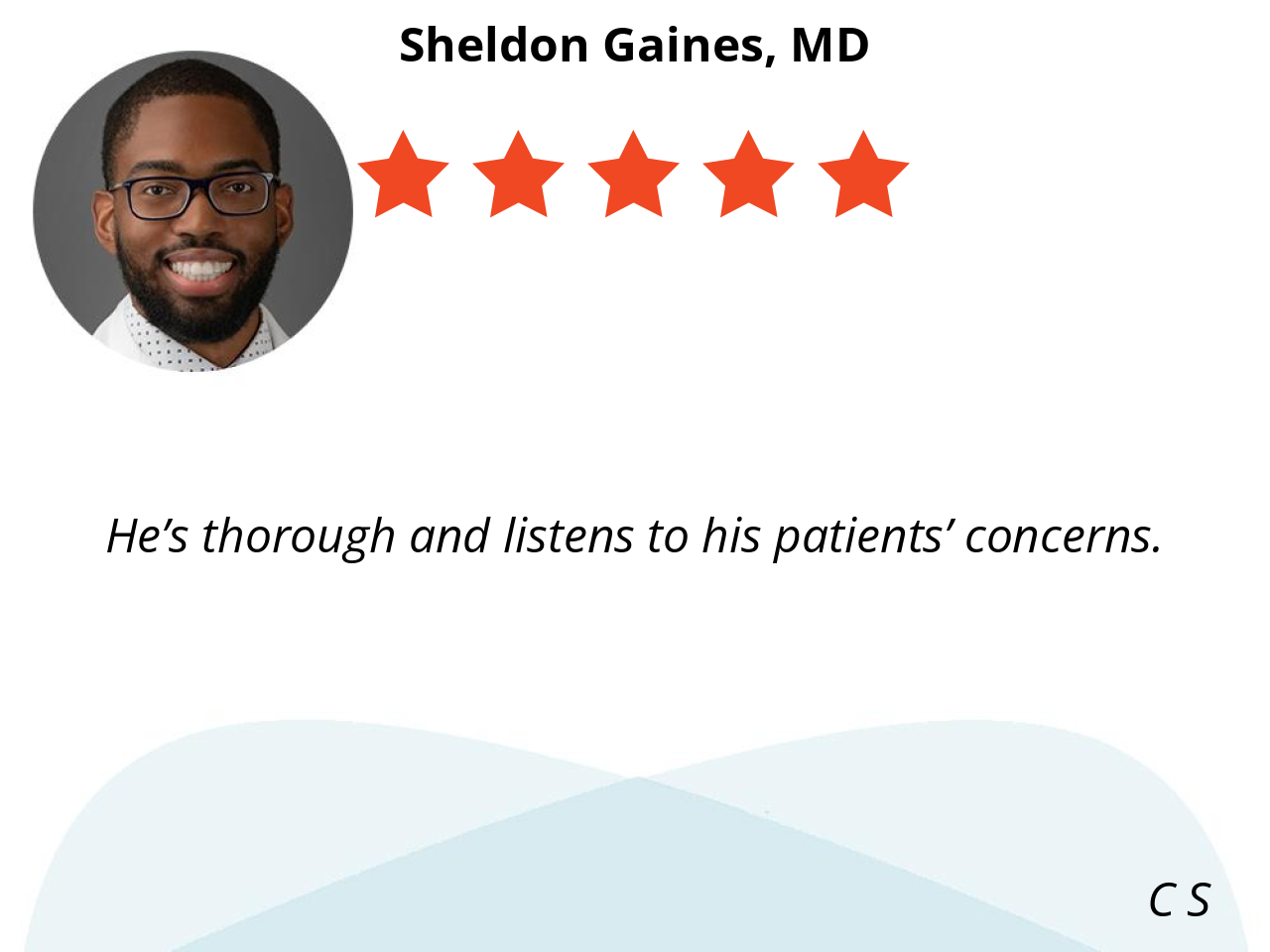 Dr. Sheldon Gaines always listens to my concerns. He explains things clearly and answers all my questions. He is caring, knowledgeable, and truly dedicated to his patients. I trust him with my health.