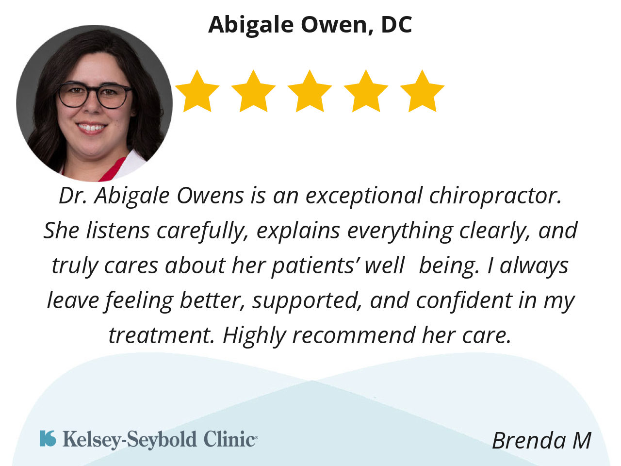 Dr. Abigale Owens is an exceptional chiropractor. She listens carefully, explains everything clearly, and truly cares about her patients’ well‑being. I always leave feeling better, supported, and confident in my treatment. Highly recommend her care.