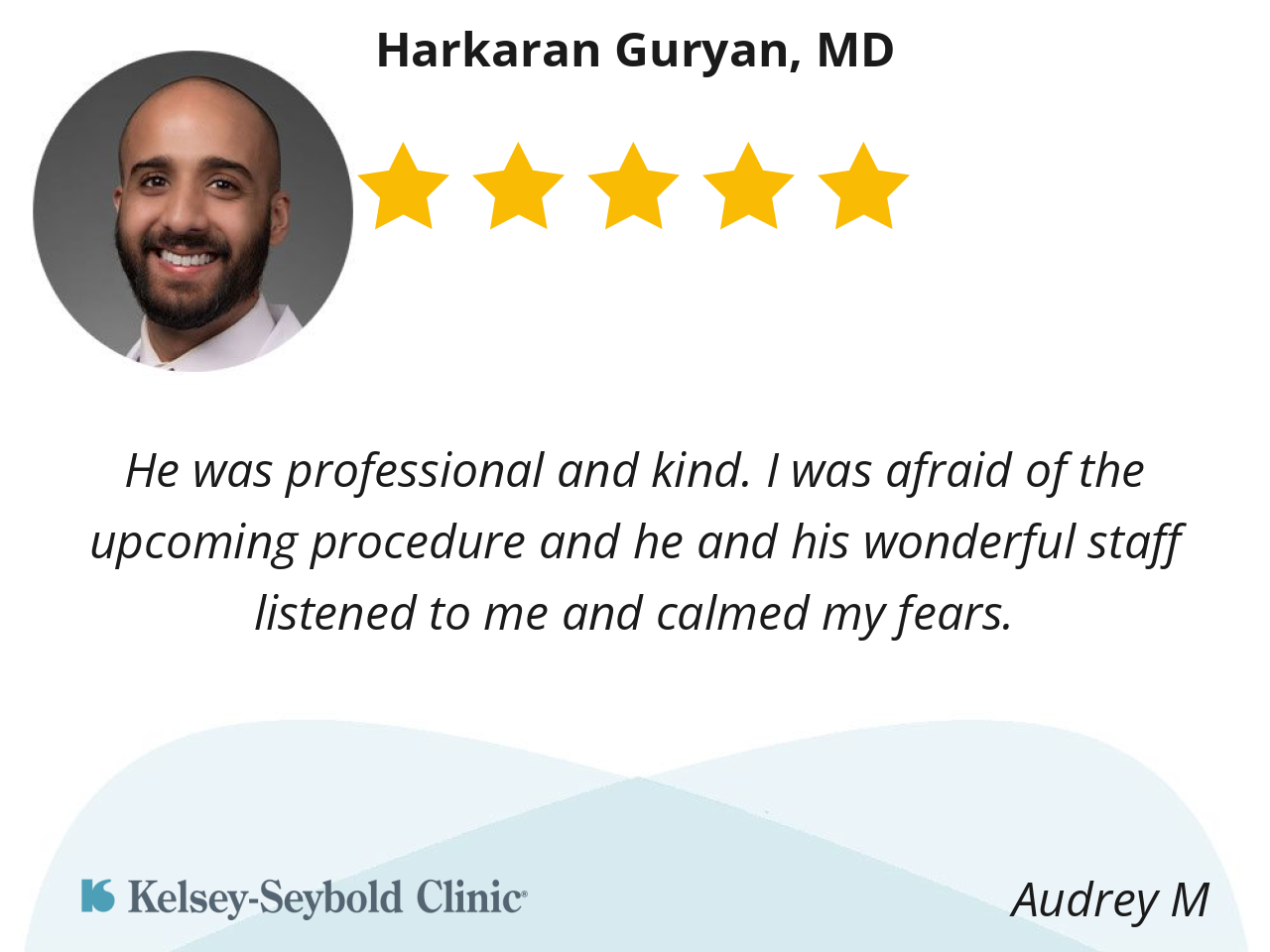 I truly appreciate the time, attention, and care Dr. Guryan gave to me as a patient. He made sure I had all my questions answered and I never felt rushed. He also does a great job of making complicated things easy to understand. Very grateful to have him as my surgeon.