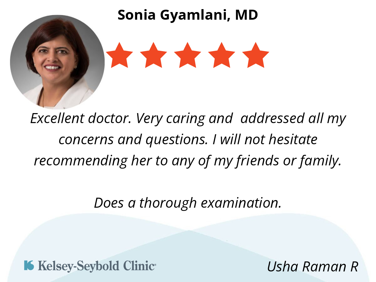Dr. Gyamlani offers a level of care that is truly rare in today’s medical field. From the moment you step into her office, it’s clear that she sees you as more than just a patient—she remembers the details that matter, not just from past visits but also from your life, your habits, and the concerns that extend beyond the exam room. Her ability to recall these nuances, combined with her genuine curiosity and dedication to finding real, lasting solutions, makes her stand out not just among physicians, but among professionals in any field. With Dr. Gyamlani, you’re not just receiving medical care—you’re gaining a compassionate advocate for your health and well-being.