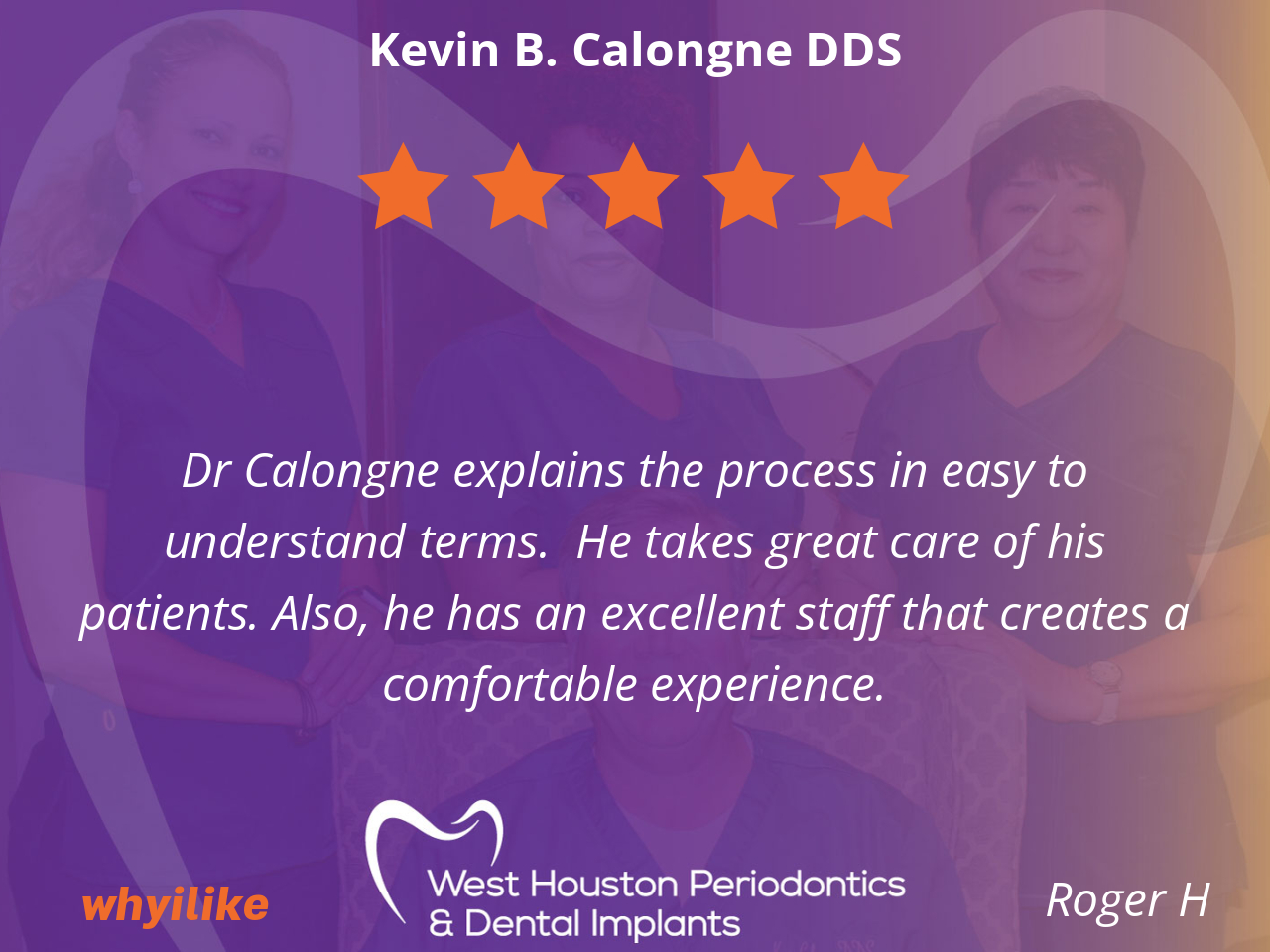 Dr Calongne explains the process in easy to understand terms. He takes great care of his patients. Also, he has an excellent staff that creates a comfortable experience.