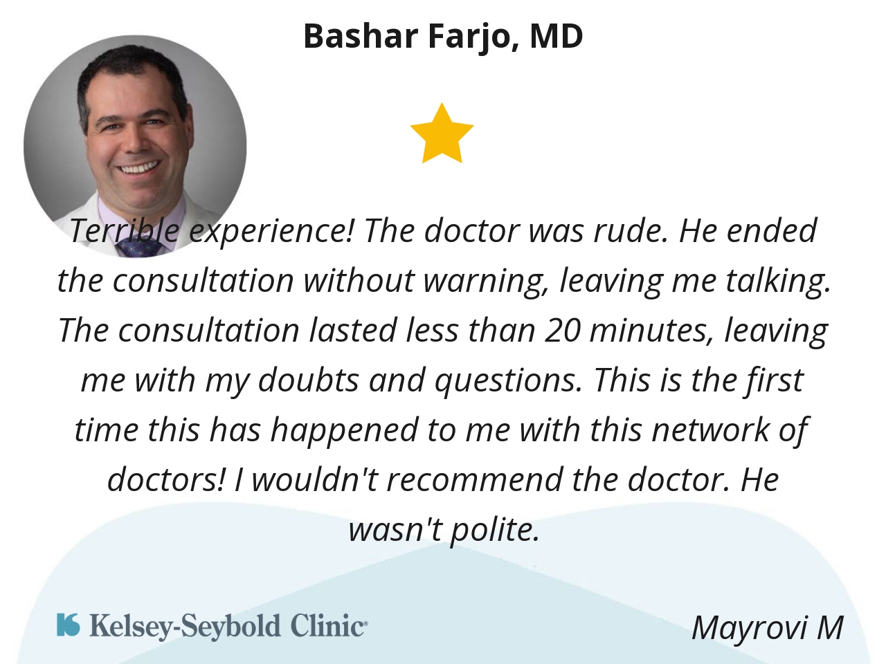 Dr Farjo was very professional, knowledgeable and to the point in addressing my issues.