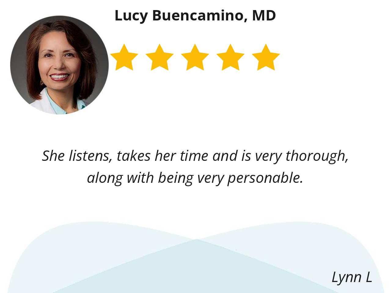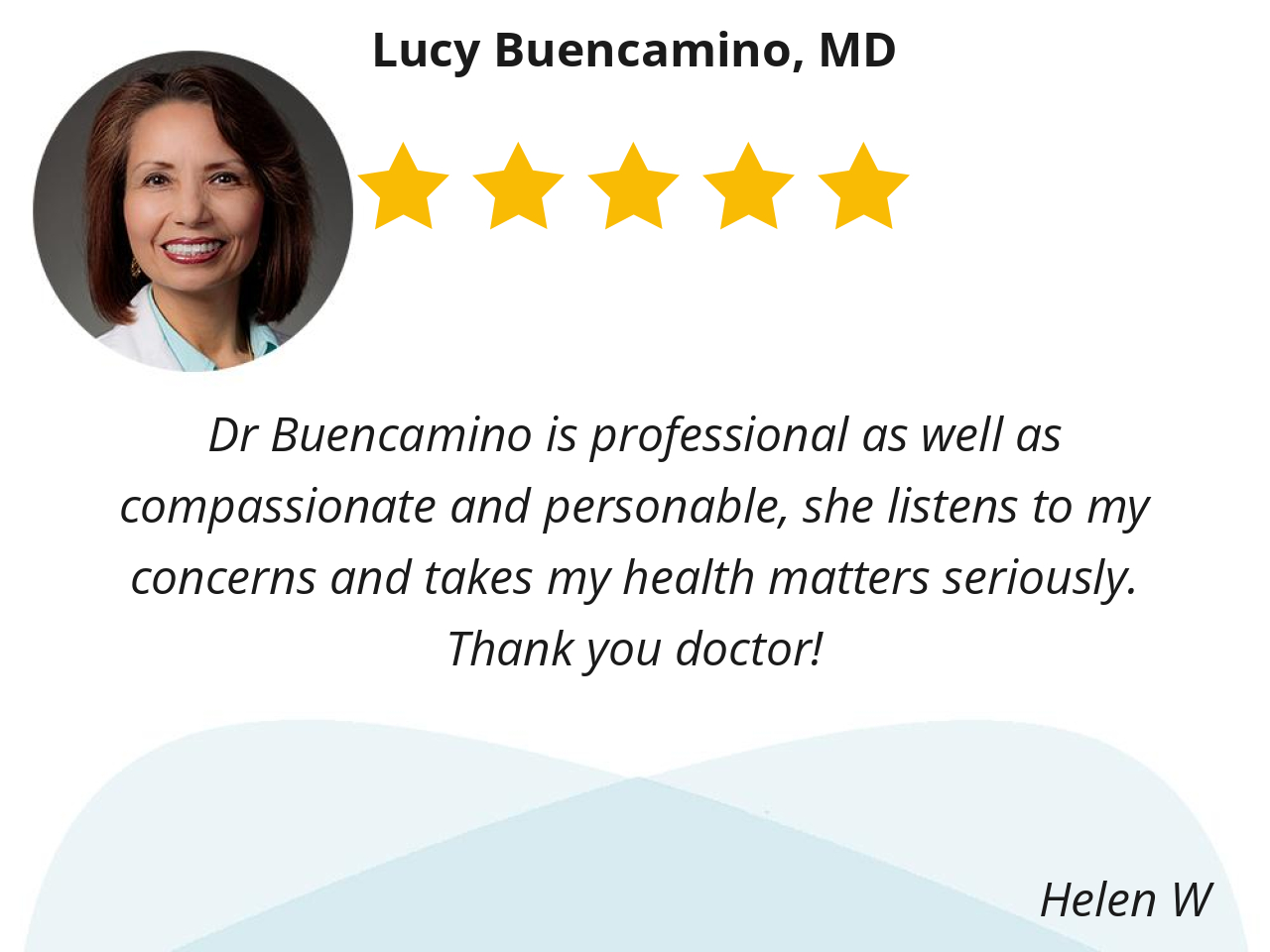 Dr Buencamino is professional as well as compassionate and personable, she listens to my concerns and takes my health matters seriously. Thank you doctor!