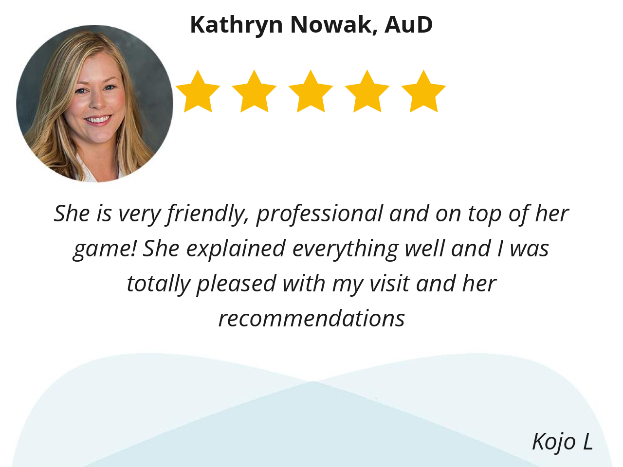 Dr. Kathryn Nowak is very knowledgeable and professional. She answered all my questions and concerns regarding the Hearing Aids.