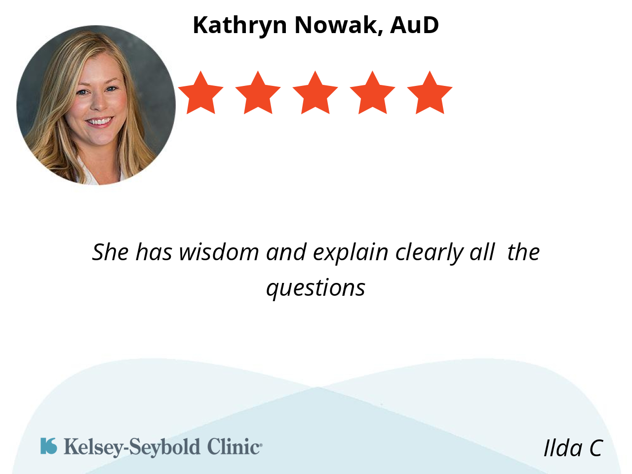 I have been seeing Dr Novak since Dr Chen discovered I was a candidate for the cochlear. Dr Novak has been wonderful especially when Dr. CHEN left, she is very reassuring to whatever I have questions about, she makes things easier when I need explaining. Besides being Professional, she's kind and listens . Kelsey is very Fortunate to have someone like her to work there.