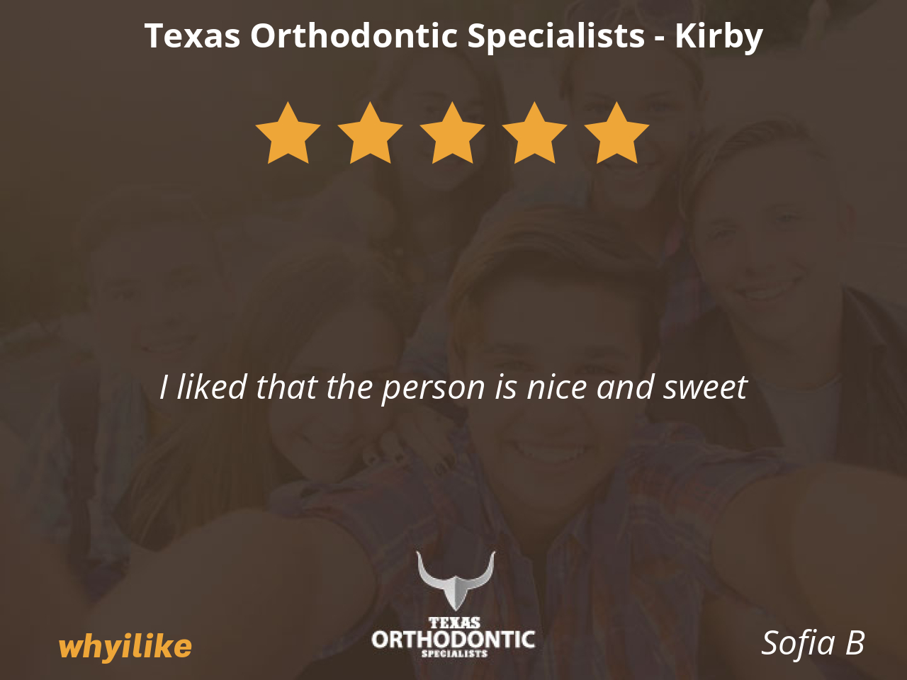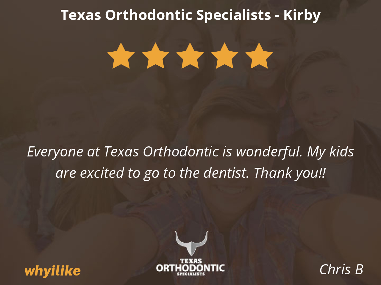Everyone at Texas Orthodontic is wonderful. My kids are excited to go to the dentist. Thank you!!