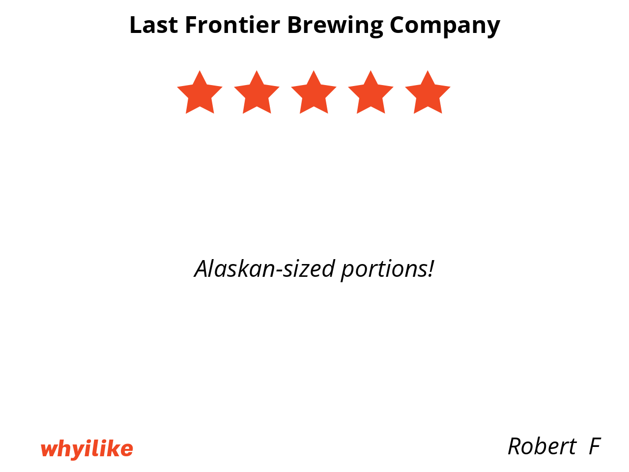 The Last Frontier Brewery is a family run business, by Alaskans for Alaskans and visitors to Alaska. We strive for excellence and quality in everything we do, and we offer a dining experience that is unique and memorable. We make all of our own soups, sauces, and dressings. We serve fresh burgers from locally produced beef and our seafood is off-the-charts good. Our steaks and prime rib are Choice grade.