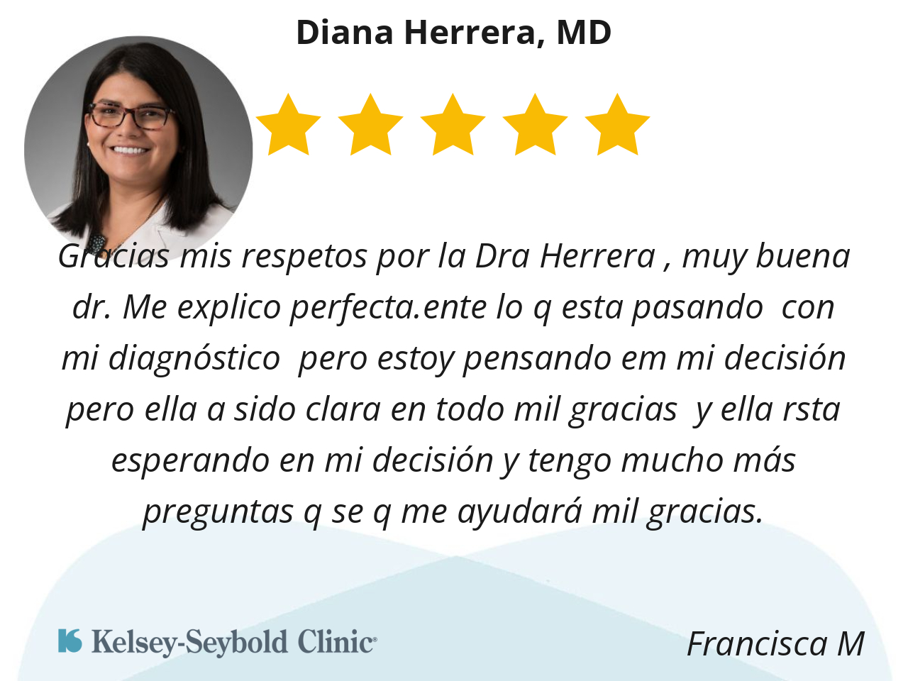 Gracias mis respetos por la Dra Herrera , muy buena dr. Me explico perfecta.ente lo q esta pasando con mi diagnóstico pero estoy pensando em mi decisión pero ella a sido clara en todo mil gracias y ella rsta esperando en mi decisión y tengo mucho más preguntas q se q me ayudará mil gracias.