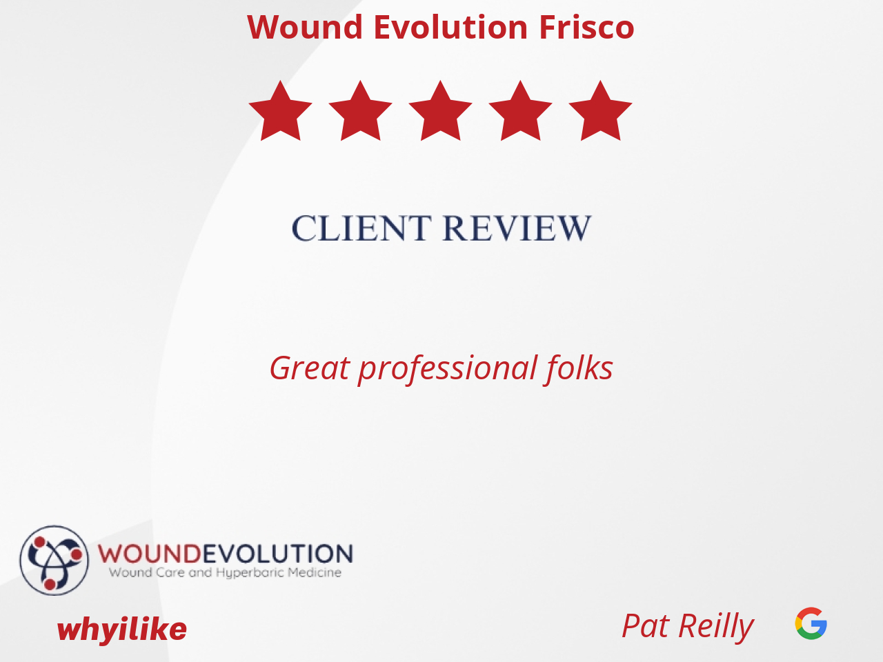 We had a great experience at Wound Evolution, from the moment we walked in. We were greeted by Annett who professionally handled all the paperwork. Our nurse, Angelica explained everything so my mother was comfortable with all she was doing. Then we met Dr . Ryan and Dr. Cherian. They were so thorough in their work and explanations. We appreciate the professionalism of this team.