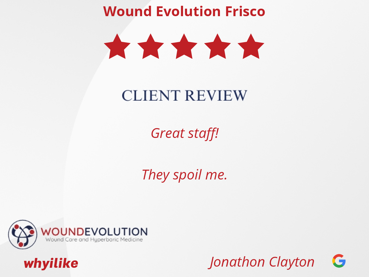 I had been coming to Wound Evolution for several months, but I took a premature break/leave of absence. Ms. Annette was very persistent about me resuming my care. I appreciate her reinforcement! Lol 😂 The entire team at Wound Evolution is great…personable, patient, passionate, and proactive!