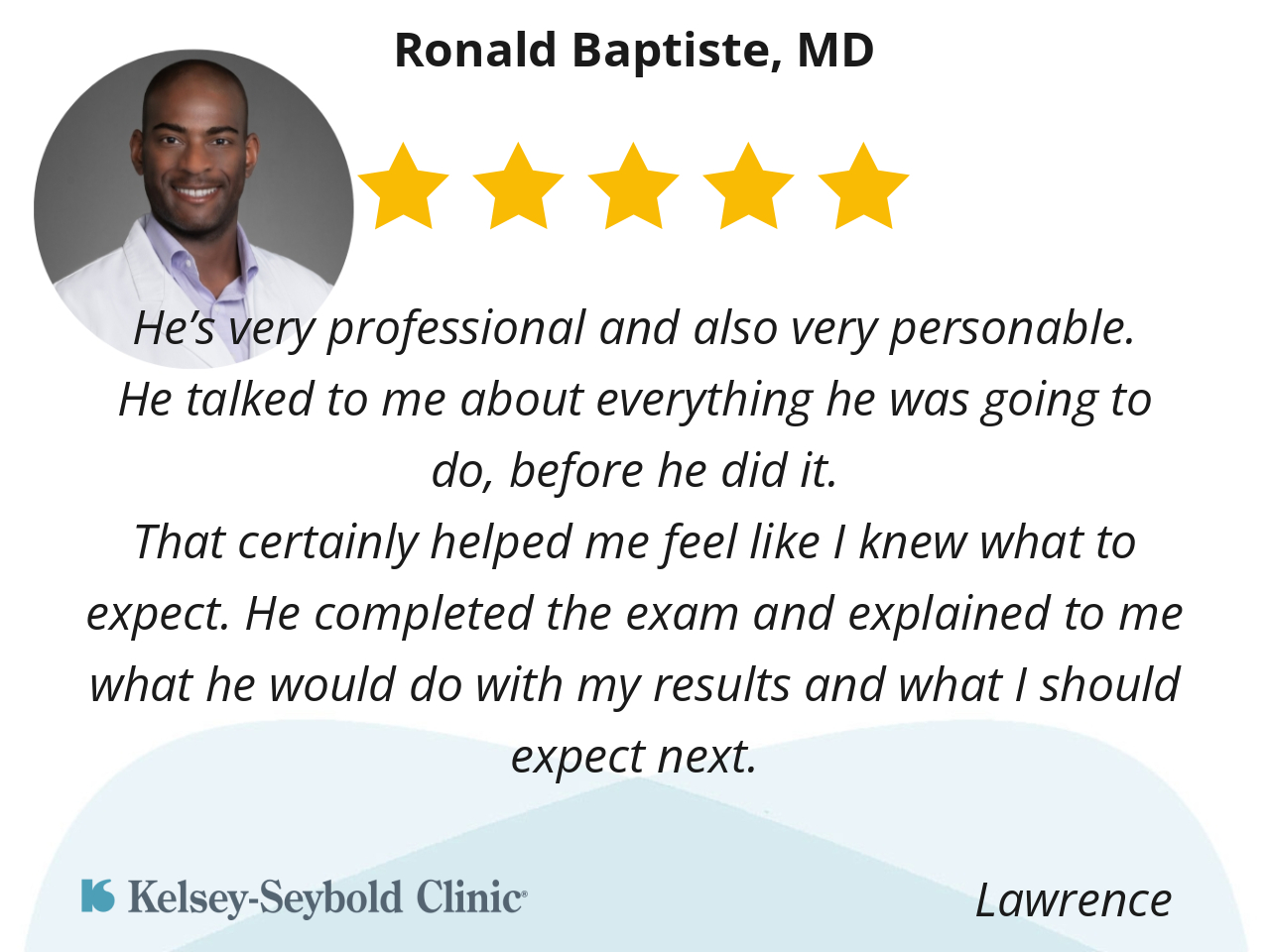 That certainly helped me feel like I knew what to expect. He completed the exam and explained to me what he would do with my results and what I should expect next.