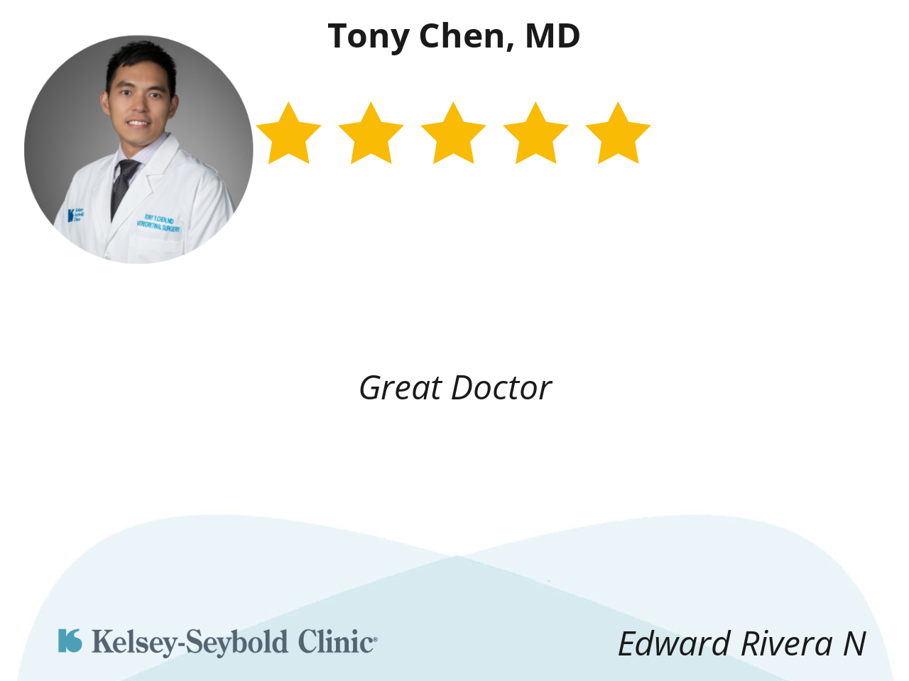 Dr Chen made me feel comfortable and he explained the procedure that I needed to have. I was a little nervous but he assured me that the procedure was one that would help me. I just want to let Dr Chen know that he is professional, great personality and explains things very well. Thank you Dr. Chen