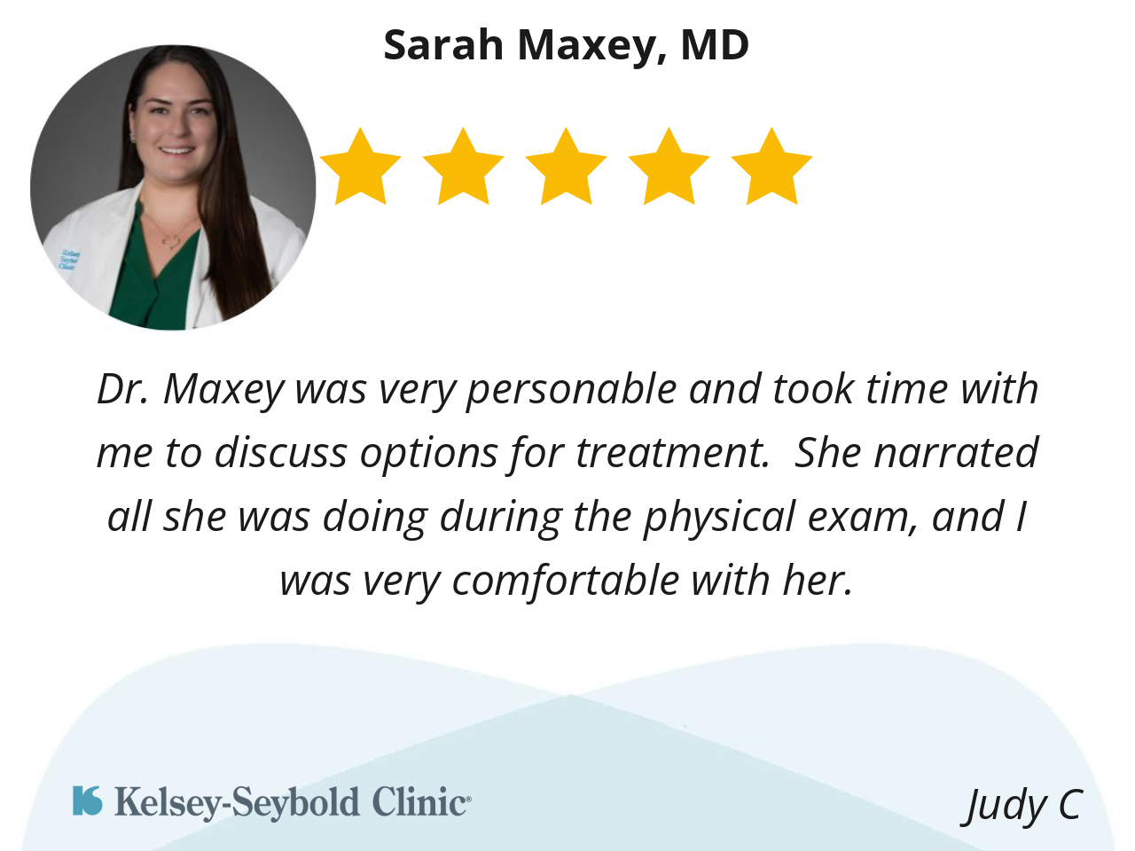 Dr. Sarah Maxey listened to my health concerns and answered all my questions. She was personable and professional.