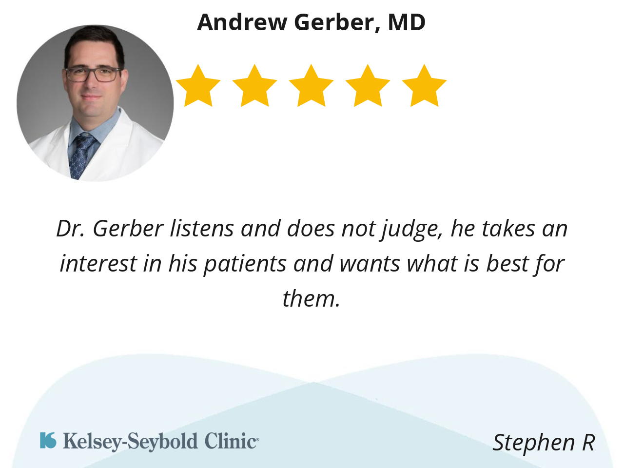 Dr. Gerber listens and does not judge, he takes an interest in his patients and wants what is best for them.
