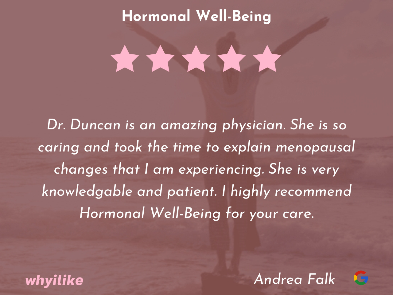 Always a great experience at Hormonal Health with Dr. Duncan. She really listens and cares, finding the best solution.