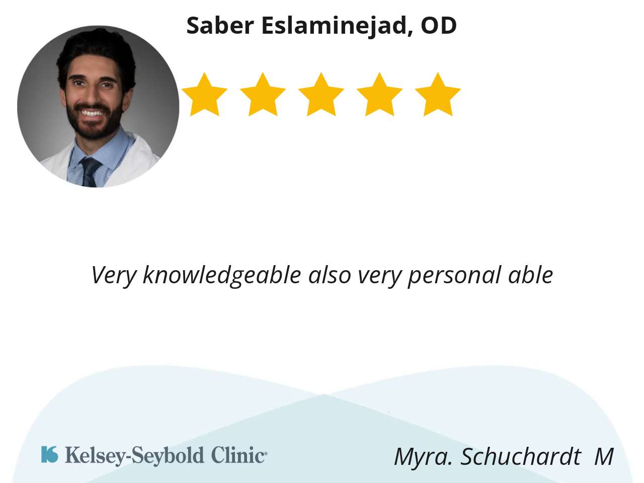 Dr Eslamijad was super. He listened to my concerns and he was very thorough. I can highly recommend him.