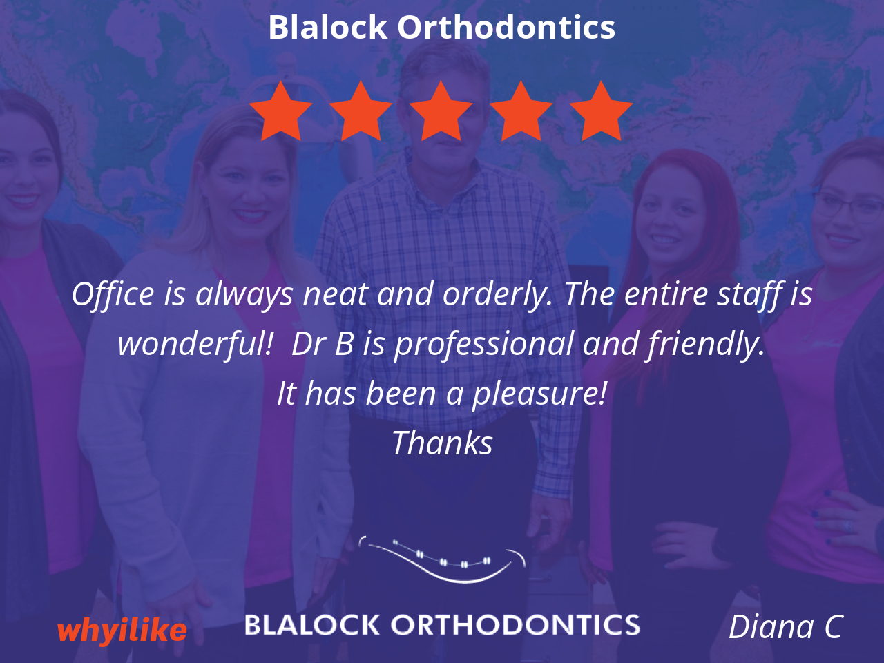 We don’t just like Blalock Orthodontics, we LOVE this office. We have been part of this office for almost 5 years, from the time our child was 8 years old with some unusual orthodontic issues. When we first met Dr. Blalock, he explained the options, processes, future possibilities, etc. We never felt like we were uninformed and his office staff is amazing as well. We really appreciate the late hours on some days and their willingness to work with our busy schedule when things came up. They always decorate the office for holidays, we enjoyed the pumpkin carving contest and the friendly atmosphere. It takes a special person to relate to children and teens, especially when there are technical processes involved and Dr. Blalock does this effortlessly. My child never feared or disliked going to appointments. We appreciate all that this office has done for us and we will miss them tremendously!