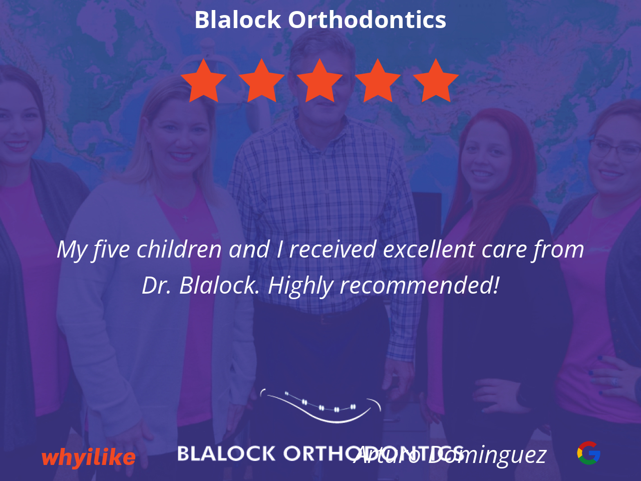 Dr. Blalock and the entire staff were fantastic! Our three children completed their ortho treatment over a period of 7 years! and we were very satisfied with the quality of work, outstanding customer service and convenience!