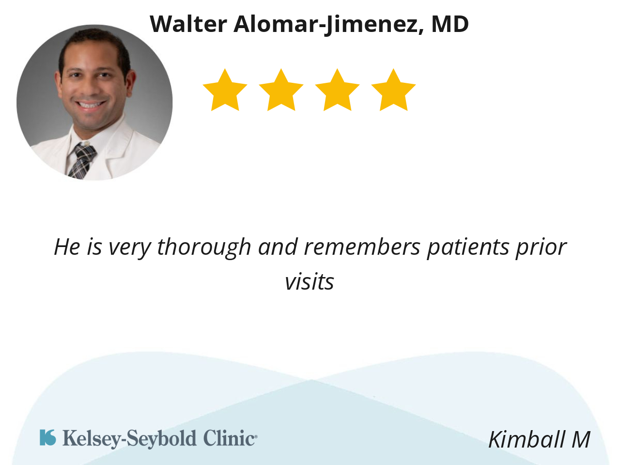 Dr Alomar is quiet, listens, suggests exercises before medicine. He seems to genuinely care!