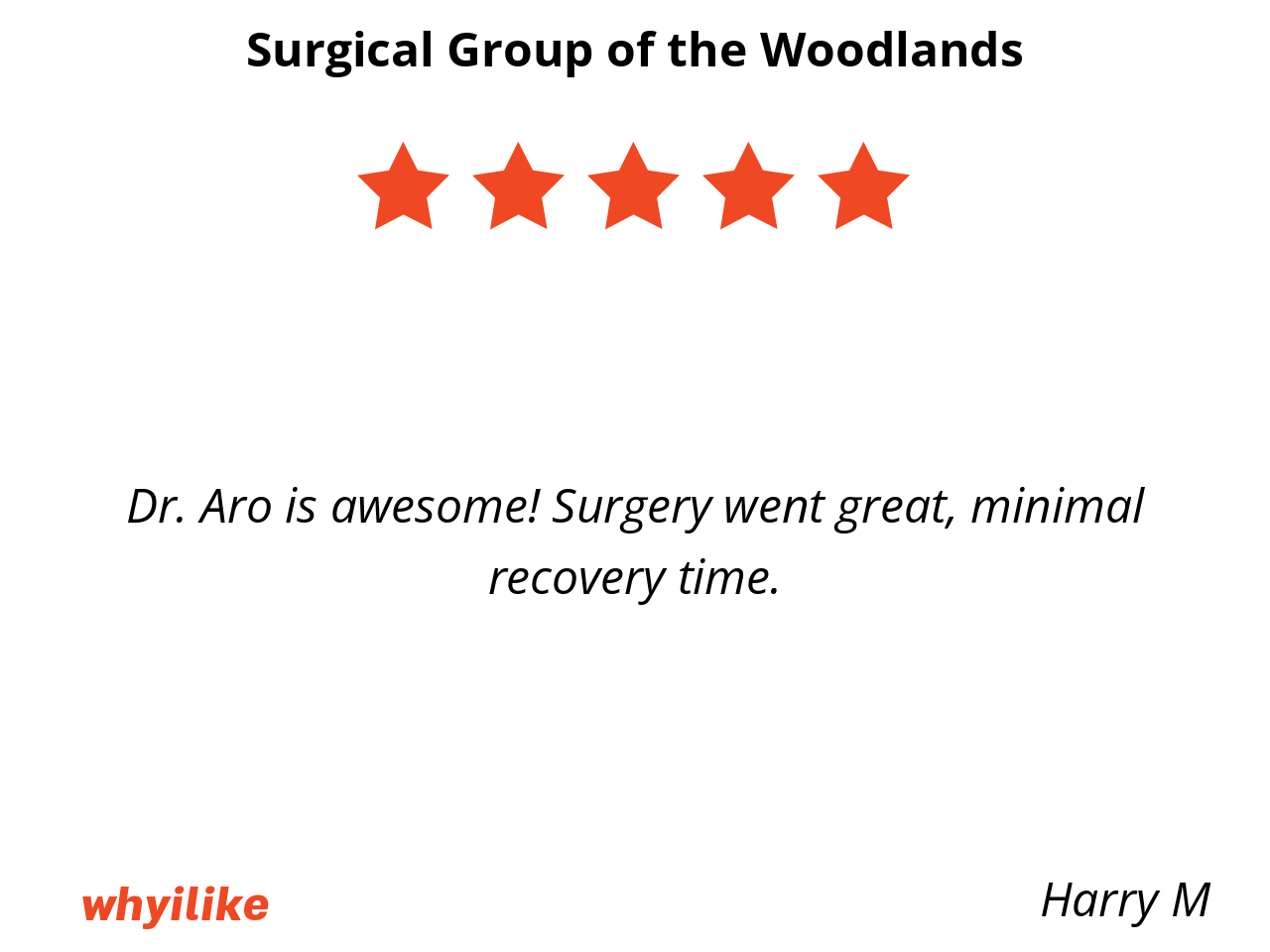 Dr. Aro is awesome! Surgery went great, minimal recovery time.