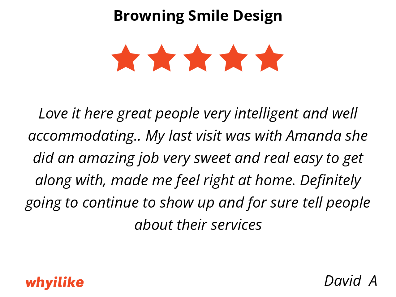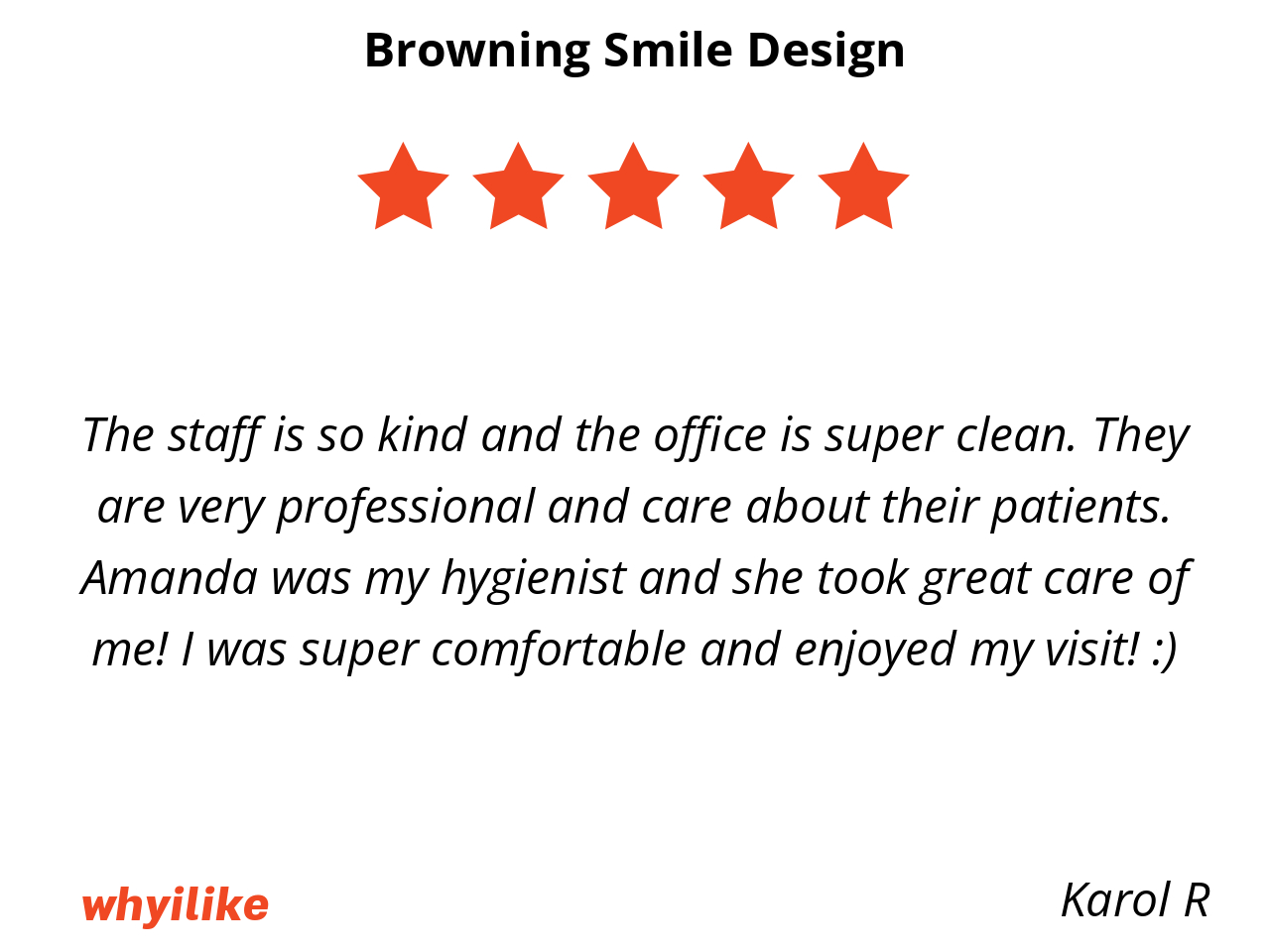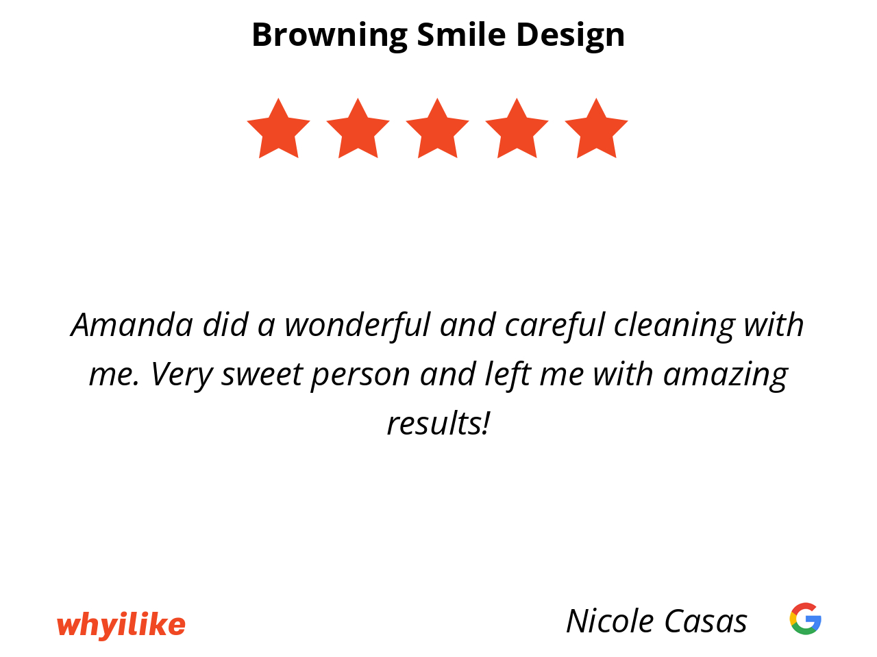 I absolutely love my experience with Amanda. She’s incredibly professional, kind, and has such a beautiful personality. I’ve been seeing her for over 4 years, and she always keeps my teeth looking beautiful! 🦷✨