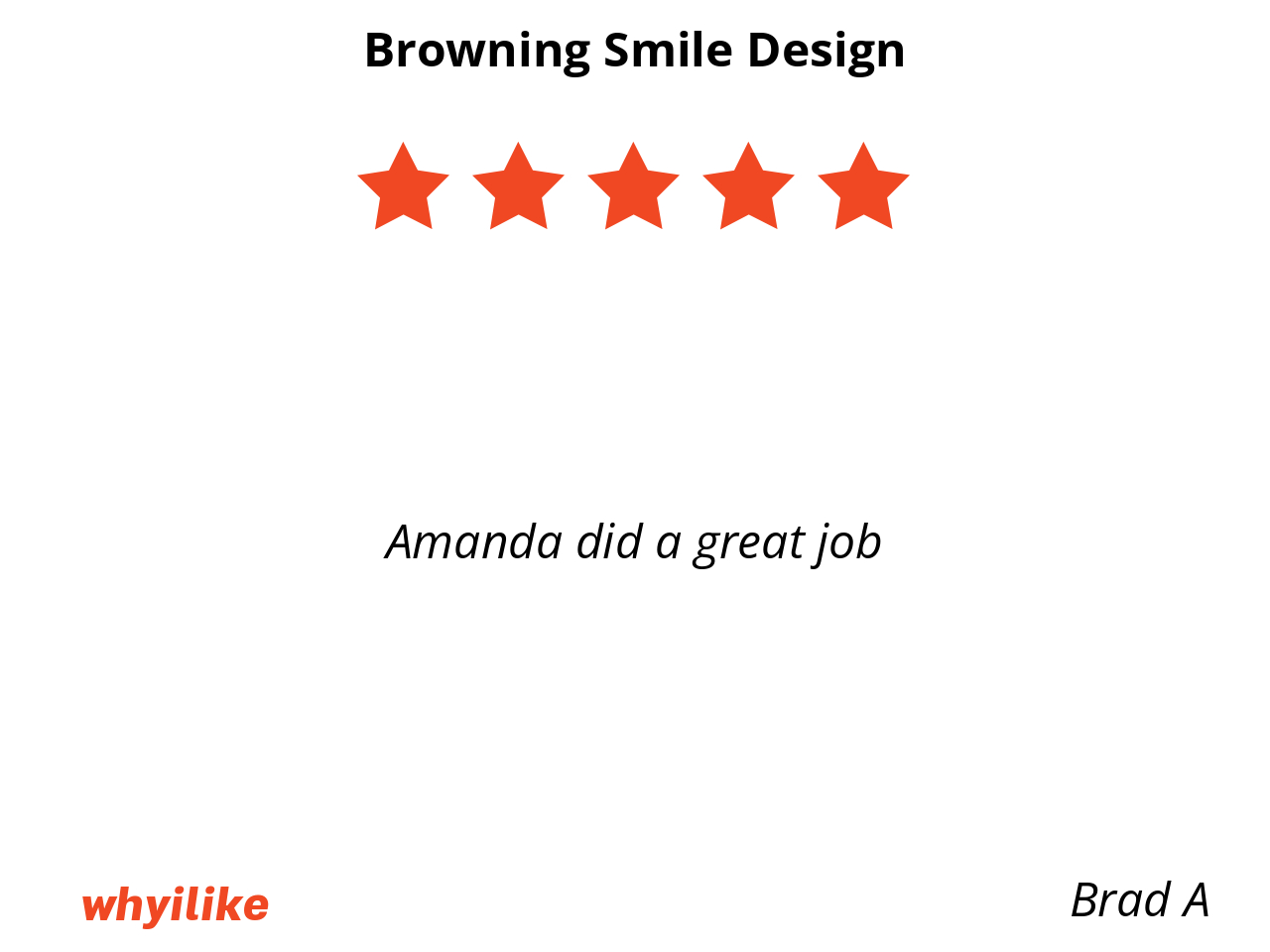Browning smile design is just awesome. Amanda my hygienist does a great job of cleaning my teeth and is just so good you actually look forward to going to the dentist. Doctor Browning is really cool and is great to talk to he greets me everytime I'm there. They are so professional from the moment you walk in absolutely the best dentist in all of Harris county.