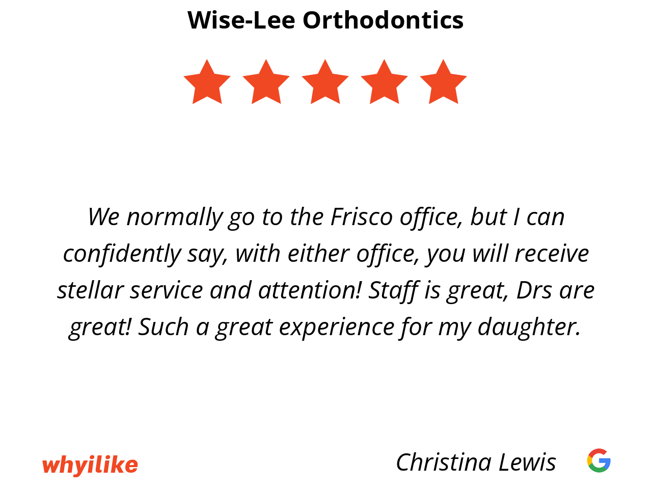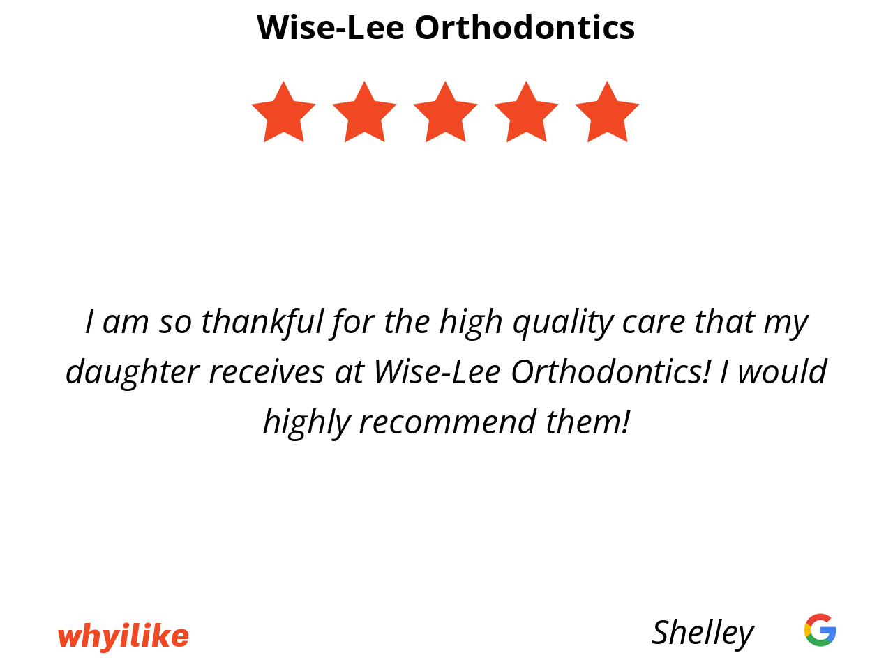 I am so thankful for the high quality care that my daughter receives at Wise-Lee Orthodontics! I would highly recommend them!