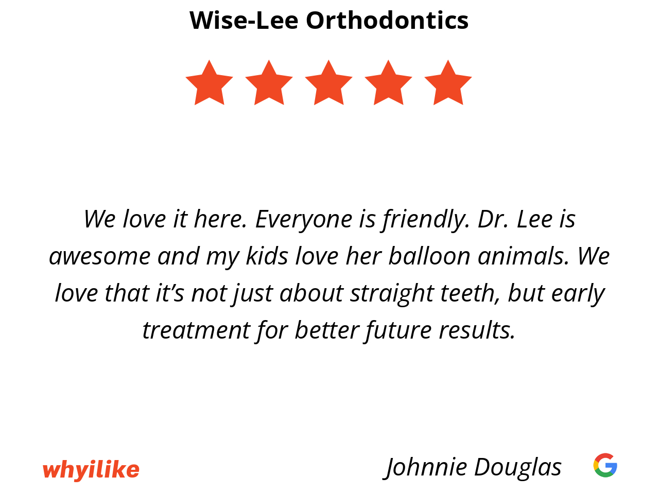 We chose Wise-Lee Orthodontics based on recommendations from parents in the area, and I am grateful we did. In just 6 months, they have helped us correct our son’s underbite and it has helped his mouth breathing. The free first visit was incredibly insightful. Grateful we are getting excellent care. Affordable payment plan as a cash pay patient.