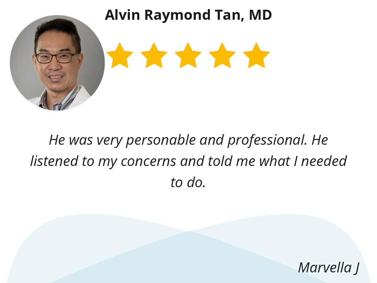Dr. Tan, is an awesome and caring doctor. He makes me feel very comfortable.
