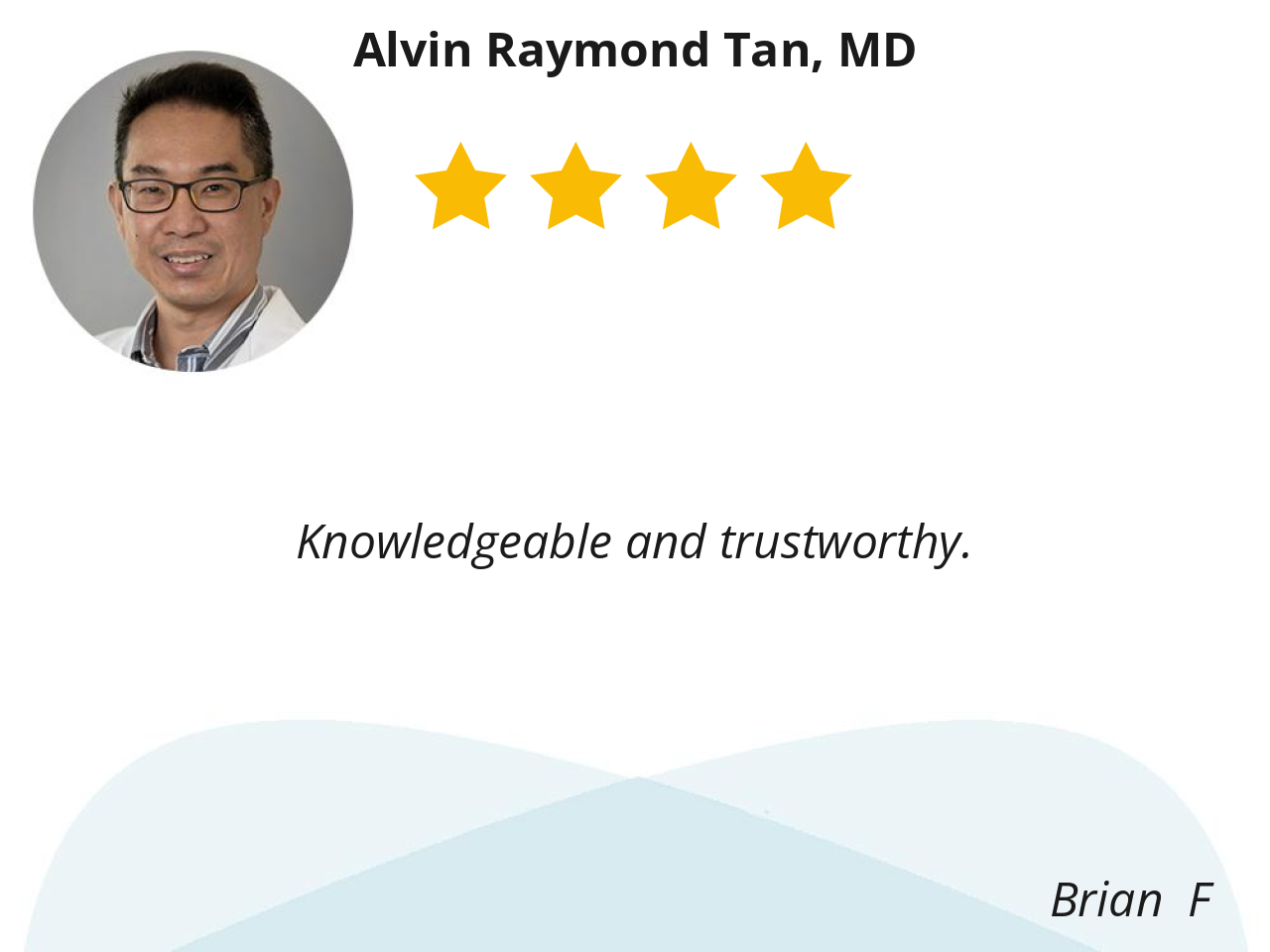 I like Dr. Tan because he is unfailingly straightforward discussing my condition. He always answers the questions that I ask , and if I ever text him, he is quick to answer.