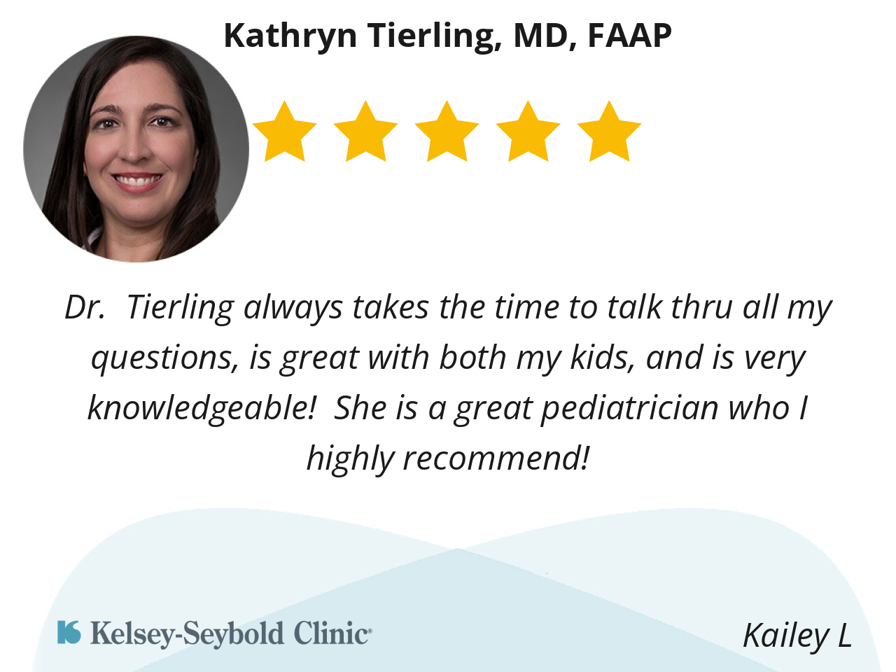 Dr. Tierling always takes the time to talk thru all my questions, is great with both my kids, and is very knowledgeable! She is a great pediatrician who I highly recommend!